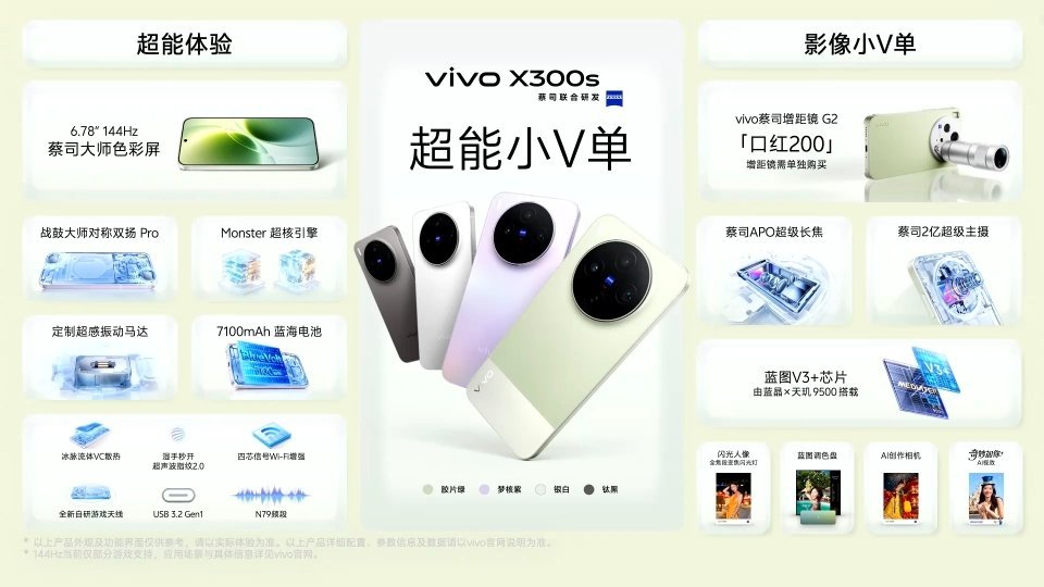 vivo X300s超能小V单 超能小V单的价格来了!4999元起……更多款配置看图。