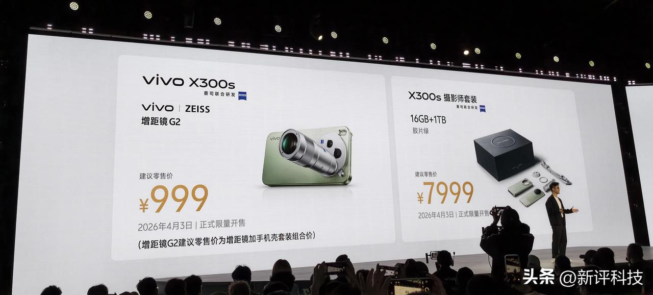 vivoX300s正式发布: 屏幕升级为144Hz刷新率,搭载iQOO同款Monster超核引擎,对称双1511扬声器,751440大尺寸X轴线性马达,天玑9500处理器,7100mAh电池,90W有线、40W无线充电,USB 3.2 Gen1,3D超声波指纹 2.0、IP68 IP69,前置5000万,后置2亿主摄HPB+5000万像素超广角+5000万潜望长焦,搭载全焦段变焦闪光灯,全新小体积200mmG2蔡司增距镜,重量153g,长度96mm。 vivo X300s超能小V单 售价: 12+256GB 4999元 12+512GB 5499元 16+512GB 5999元 16+1TB 6999元 赠送200GB云空间 蔡司增距镜G2单独售价999元 vivoX300s摄影师套装 16+1TB 7999元