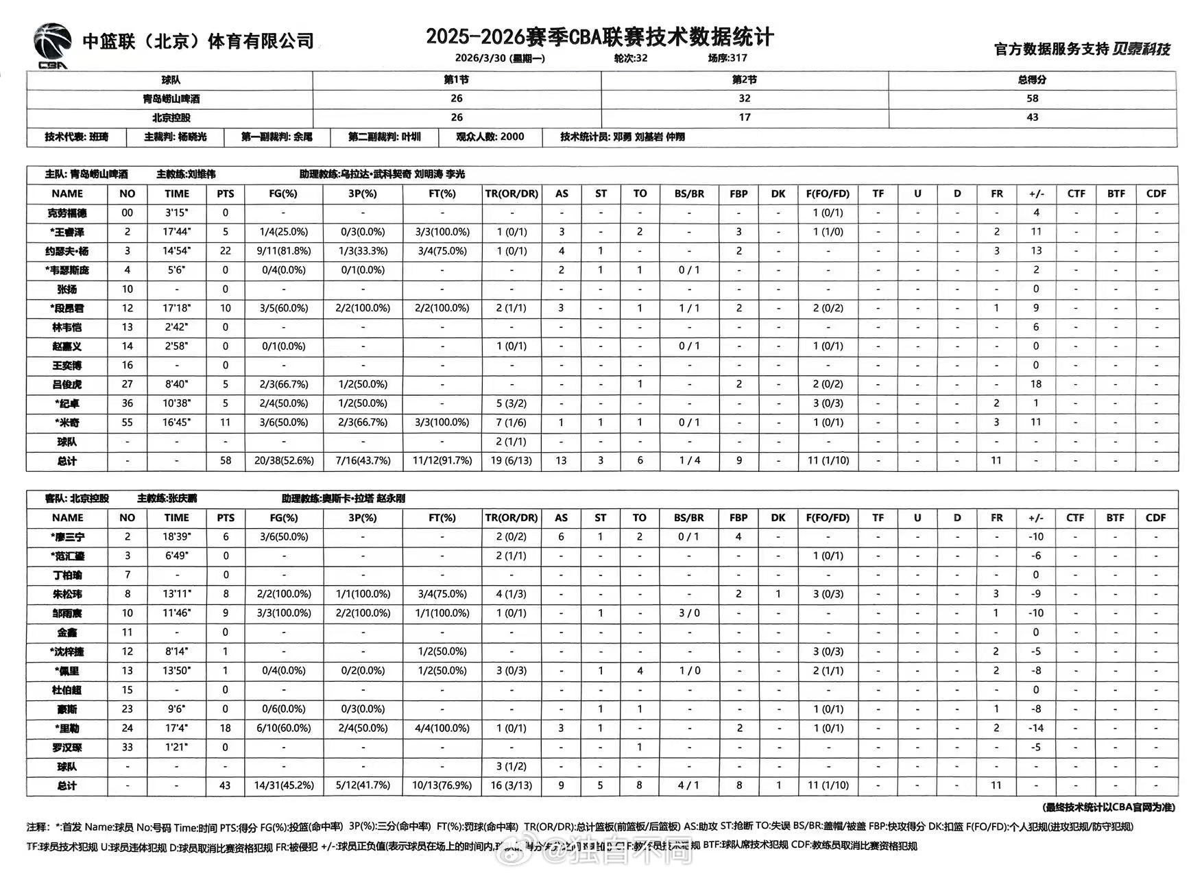 本轮对阵北控,约瑟夫·杨在上半场突然爆发,独砍22分。这已经是他加盟青岛男篮以来,单场第二高得分。主场对阵上海男篮,他曾全场砍下31分。看这场对阵北控下半场他能否继续延续火热手感,打破本赛季个人得分纪录。如果能够实现,青岛男篮大概率也会在主场赢球。青岛男篮vs北控男篮