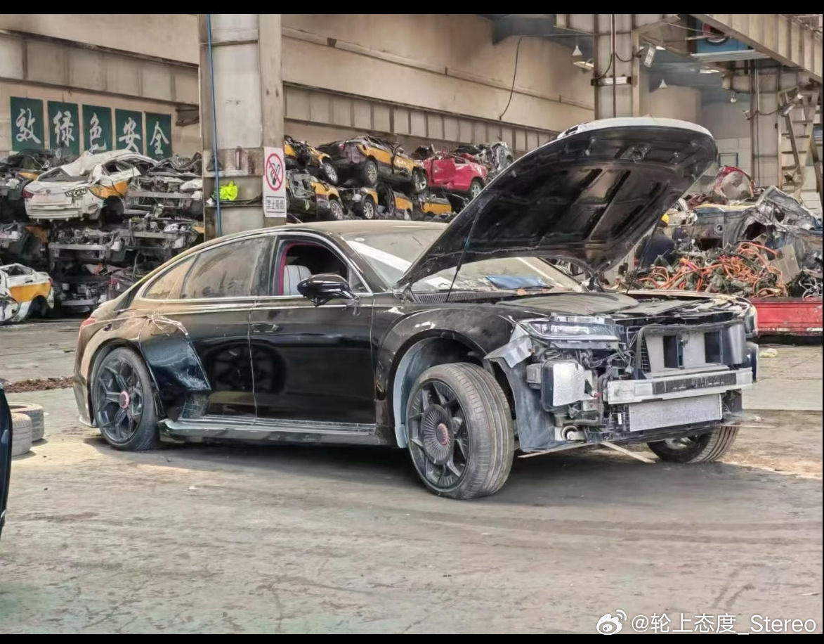 配有完整的改装方案和灵感来源增设涡喷发动机出征国际改装展限量发售过的模型的红旗文成 在今天被送进了报废厂压铁