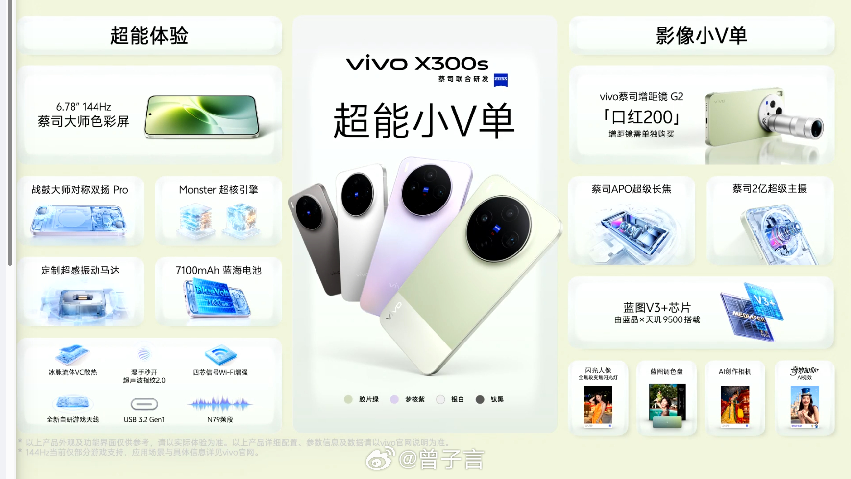 超能小V单 vivo X300s:4999 元起;专业V单 vivo X300 Ultra:6999 元起;行业首款 4K 平板 vivo Pad6 Pro:4299 元起。