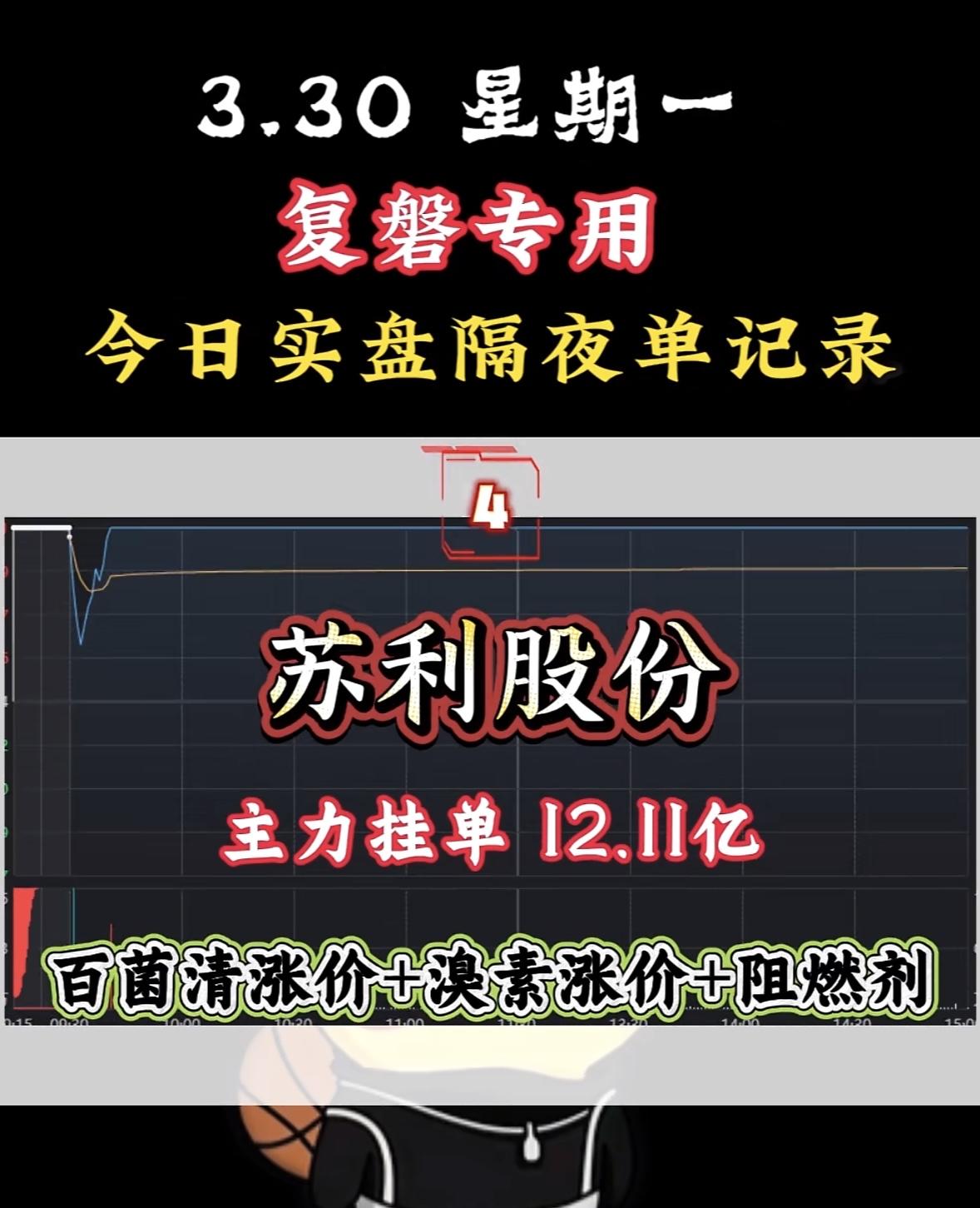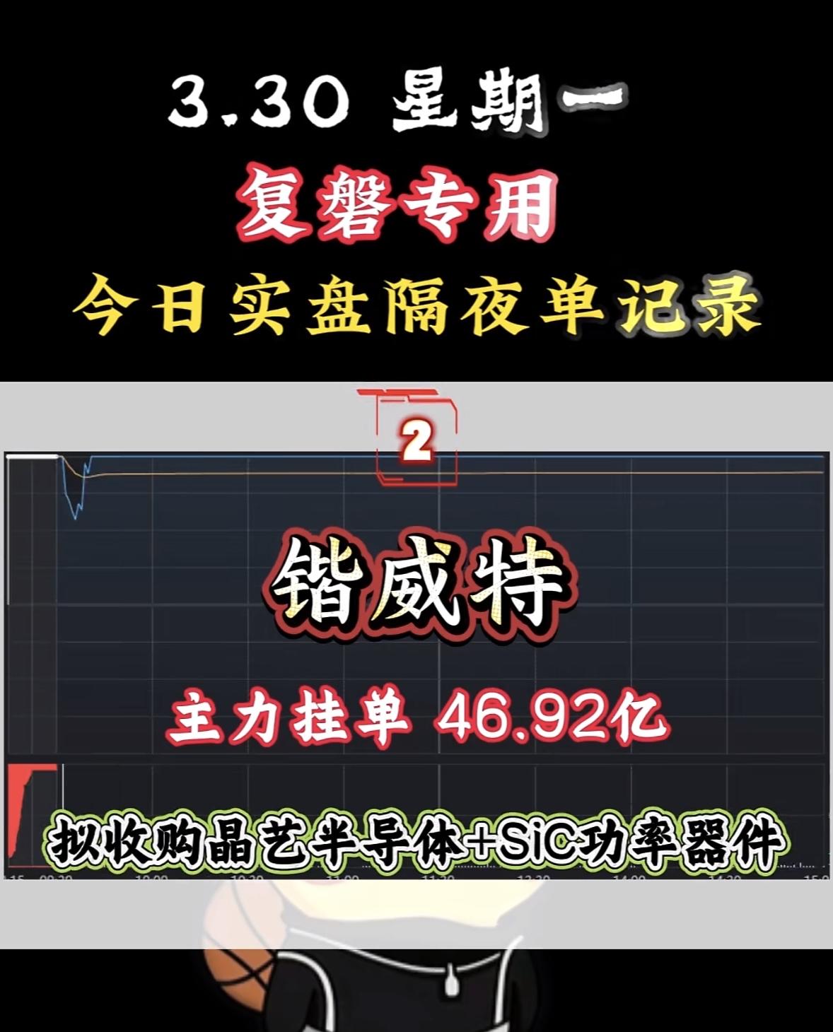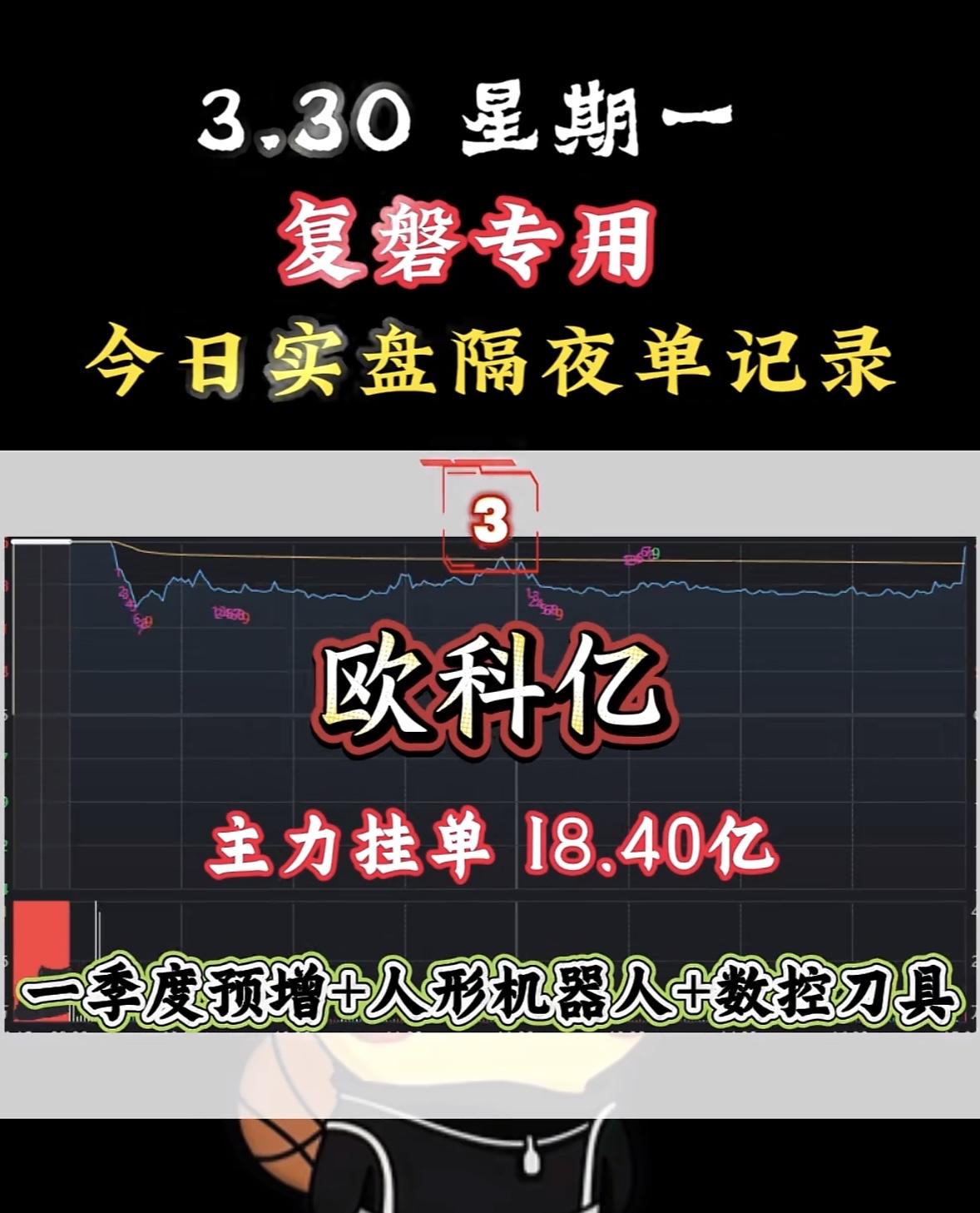 3月31日周二暗盘隔夜挂单排行榜揭晓 3月30日周一复盘来啦!今日A股走出独立