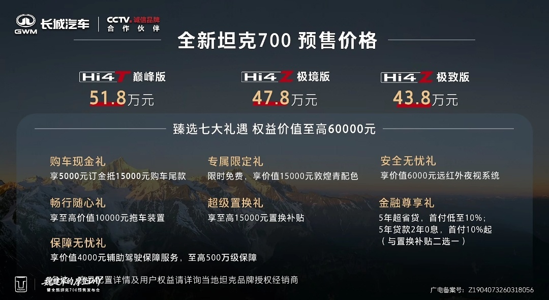 全新坦克700正式预售,Hi4Z版本预售43.8~47.8万元,Hi4T巅峰版预售51.8万元我与汽车的日常全新坦克700新时代新旗舰全新坦克700来了