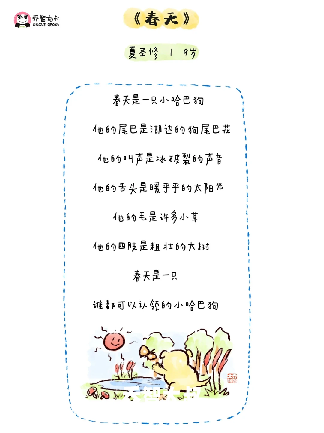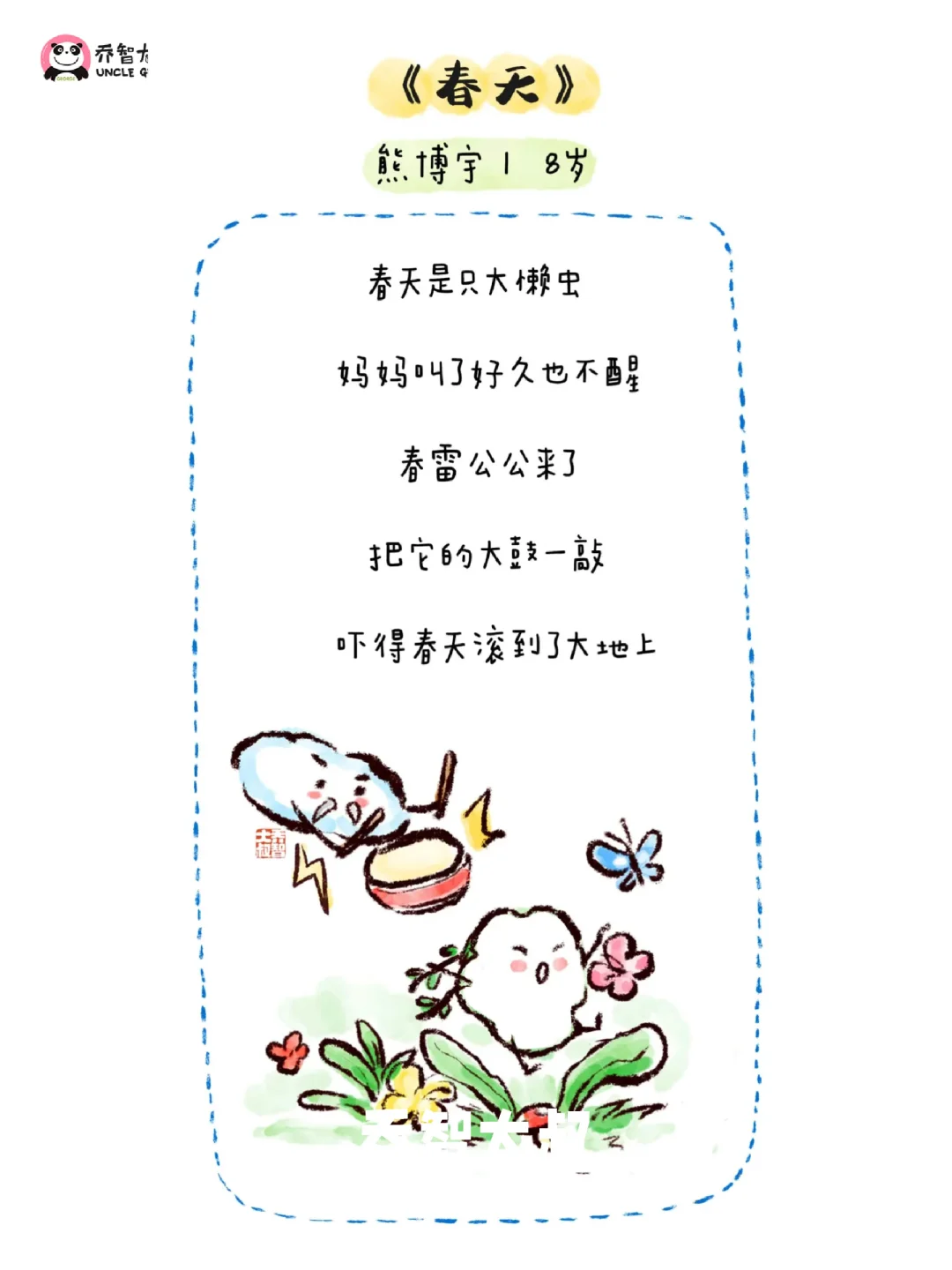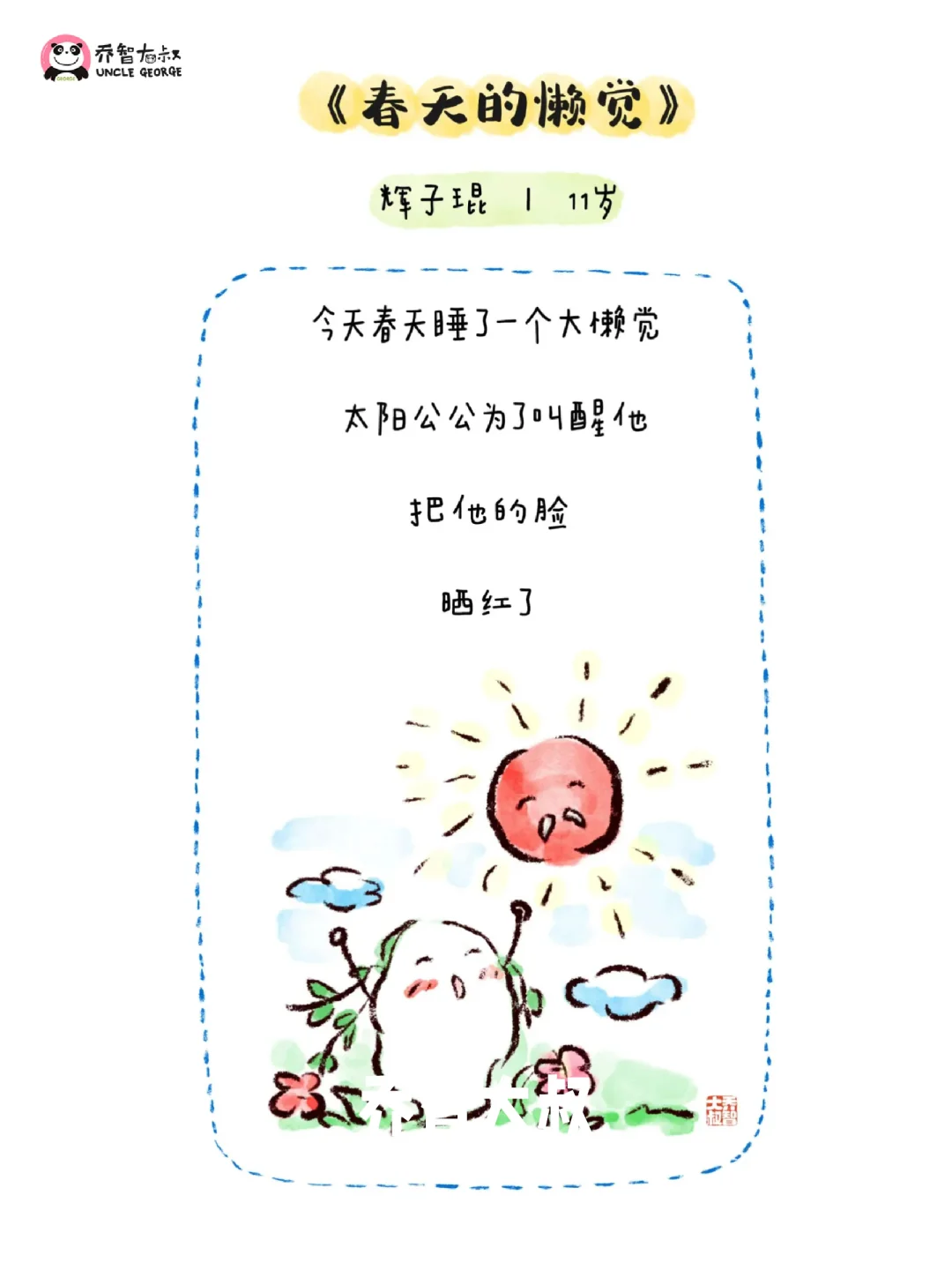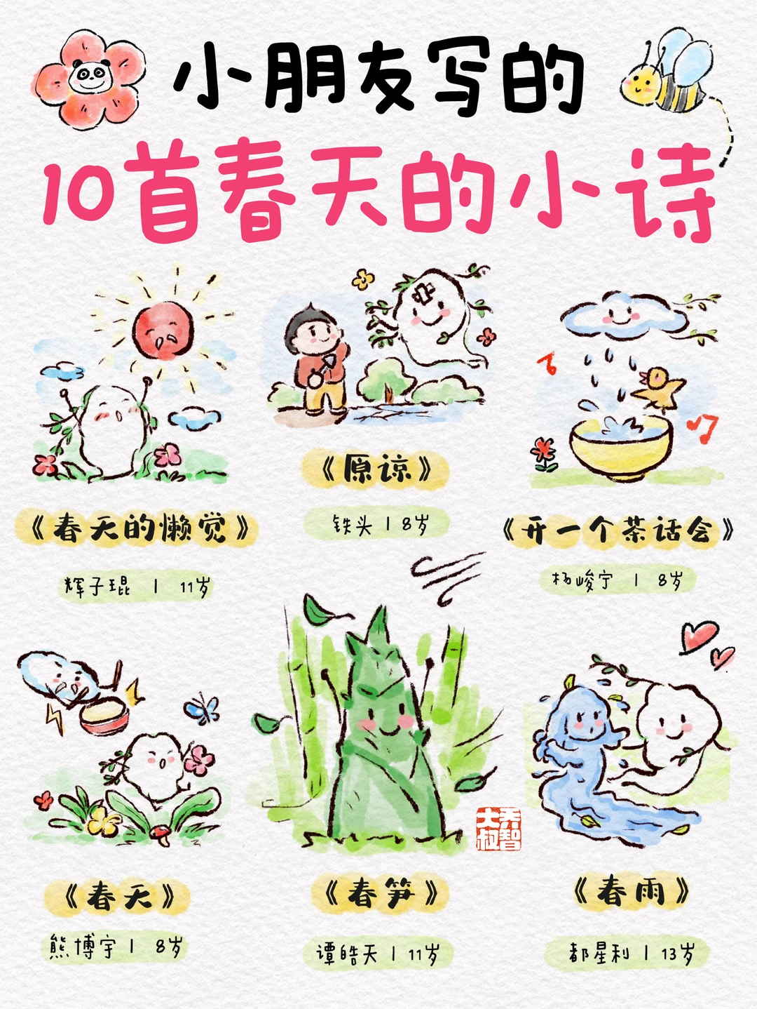 被孩子笔下的春天治愈了! 10 首小诗写尽春日浪漫💚 8 岁孩子眼里 春天是赖床的懒虫、是会原谅人的小天使 是小狗、是哈巴狗,是偷偷长大的种子… 每一句都带着童真的想象力 把春天写得软乎乎、暖融融 原来孩子眼中的春天,才是最动人的诗✨