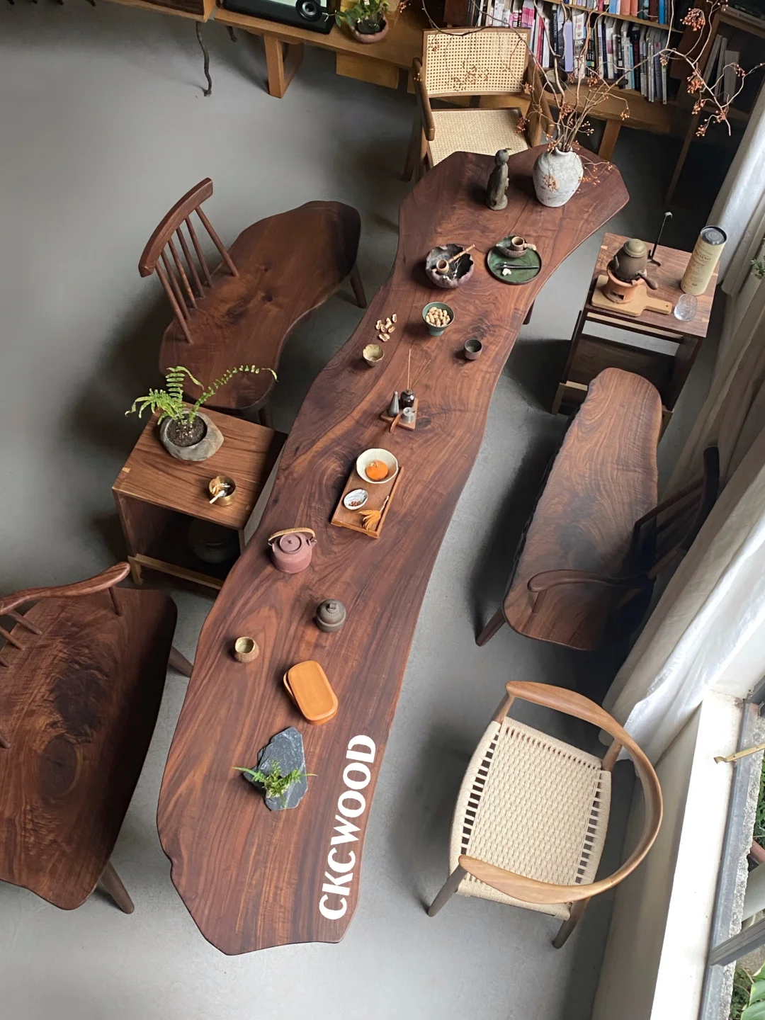 搞了张野生茶桌|黑胡桃不规则桌子氛围拉满
