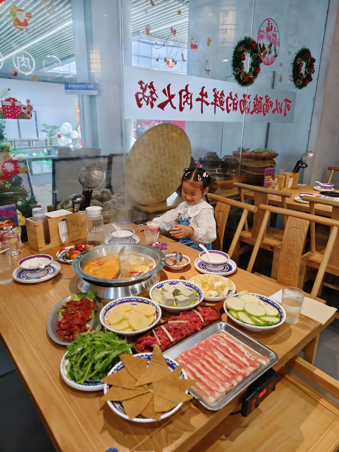 ,点了份双人餐,酸汤和牛骨清汤鸳鸯锅底,菜品新鲜份量足,两大一小吃的饱饱,鲜切牛肉很鲜嫩,小丸子直接竖起大拇指👍🏻太好吃啦!
