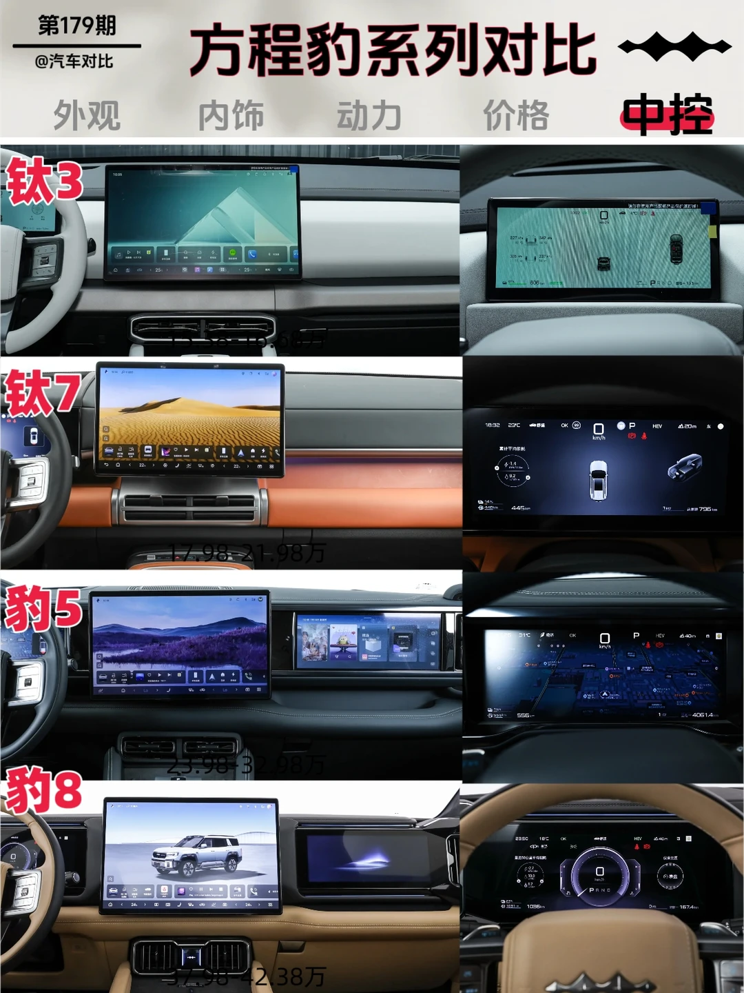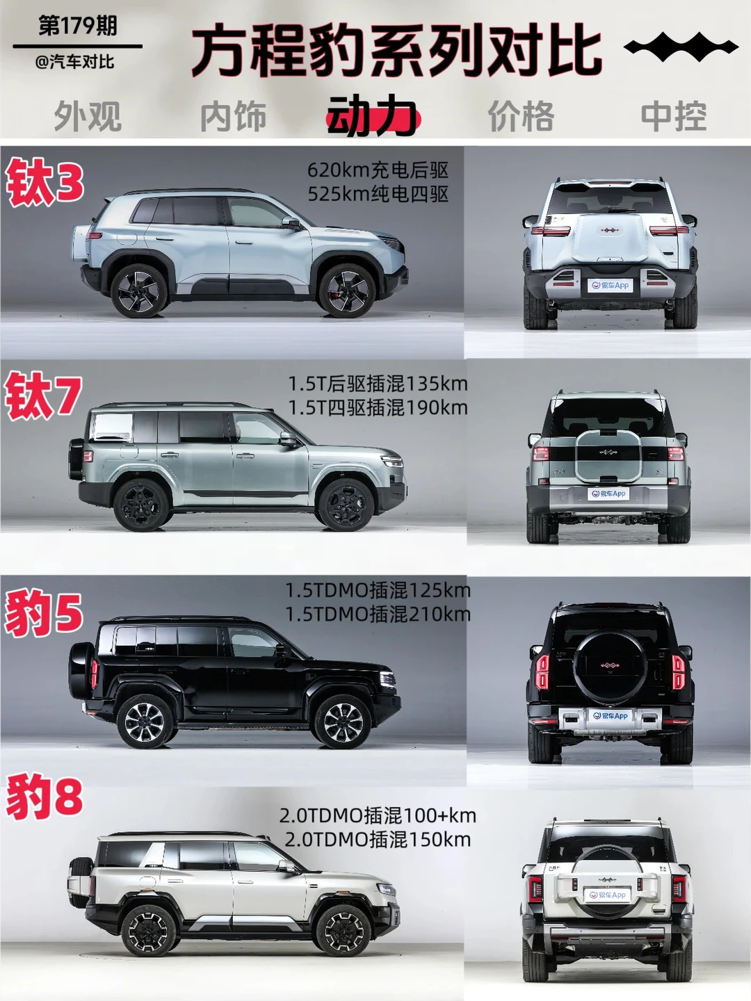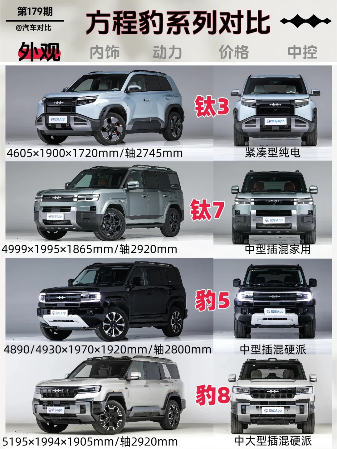 方程豹钛3、钛7、豹5、豹8对比