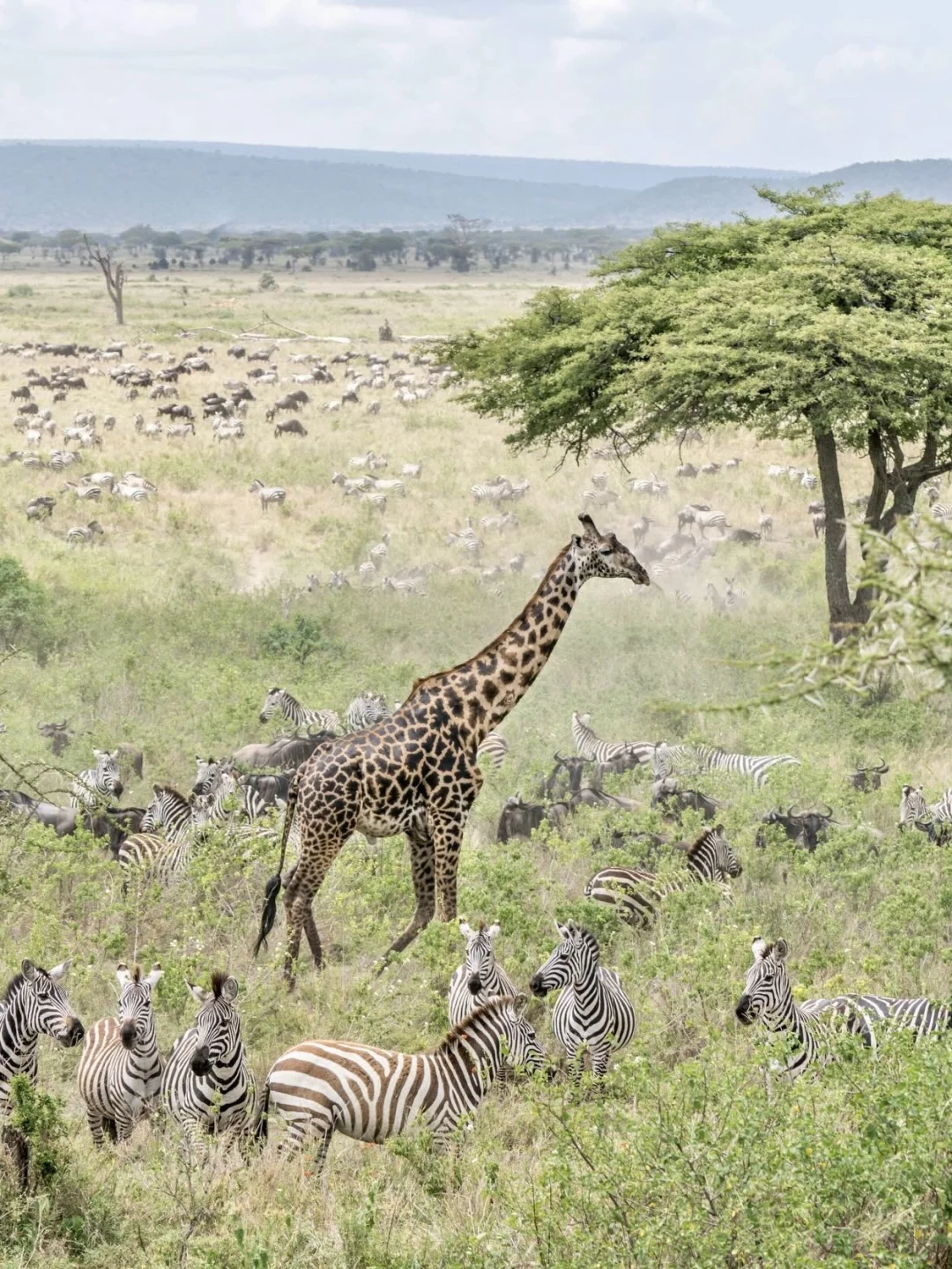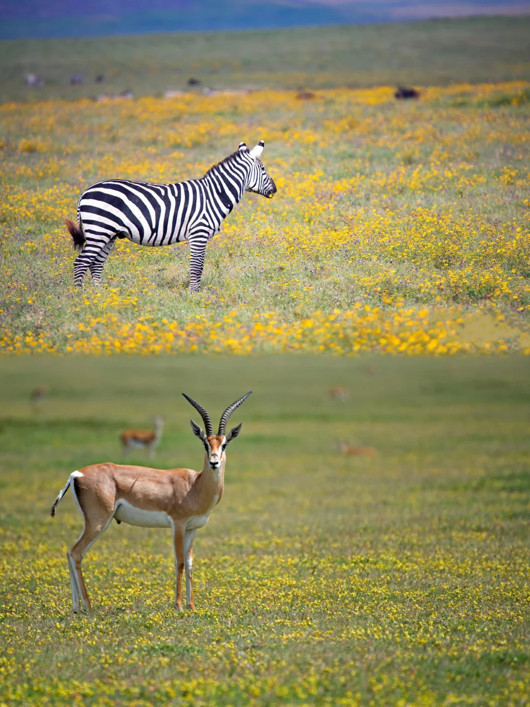 虽然这里没有花海,但有着无尽的草原和野生动物群,5月虽然不是大迁徙旺季,但依旧能看到大量动物。草原辽阔无边、狮群捕猎、长颈鹿踱步、角马成群