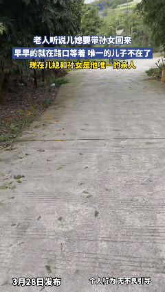 “泪目了”四川,老人的独子因意外去世,在得知儿媳要带孙女回来后,竟早早守在村口,不料儿媳的一句话,让所有人都红了眼眶。 这老人太不容易了,原本该是含饴弄孙的晚年,却被一场突如其来的噩耗击碎。儿子走得太突然,给老人留下了一辈子都填不满的心口痛。 在农村,独居老人最怕的不是穷,而是那种被世界遗忘的孤独。可这次,老人没法安心待在屋里他太激动了。 于是,早早地走到了村里的路口,他没有坐着等,而是不停地踱步,眼睛死死地盯着进村的方向,每看到一辆车过来,他的身体就下意识地前倾,生怕错过孙女和儿媳的身影。 直到远远地看见车子缓缓驶来,看到那两个熟悉的身影出现,老人像个孩子一样快步迎上去,一把抱起孙女,在那一刻,他紧绷的脸终于舒展开了,露出了久违的笑容。 很多人说,丈夫走了,儿媳只要不闹、偶尔联系就算不错了。但这位儿媳,却一直主动带着女儿回乡探望,儿媳说:“这是我能替孩子爸做的唯一的事。” 这句话,直接让在场的人红了眼眶。这姑娘太懂事了,懂事得让人心疼。 她没有因为丈夫的离去就切断与公公的联系,反而把这份责任扛在肩上,成了老人生命里唯一的亮色。 对于老人来说,每一次的相见,不仅仅是见到孙女的欢喜,确认自己依然被记挂的温暖。 愿这份跨越生死的善良,能在给老人带来最温暖的陪伴。愿这份难得的亲情,岁岁年年,长久陪伴。