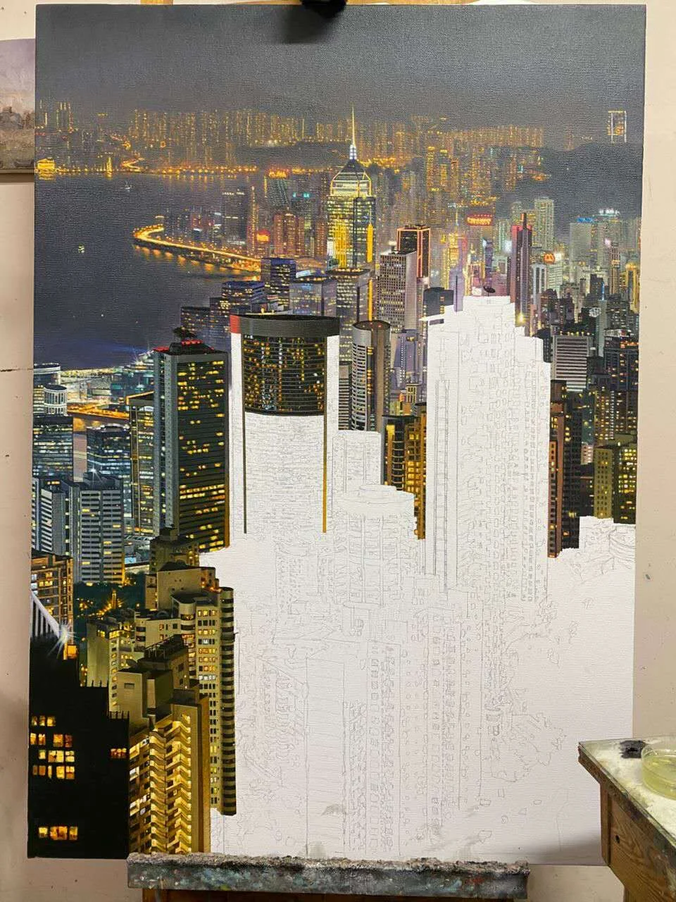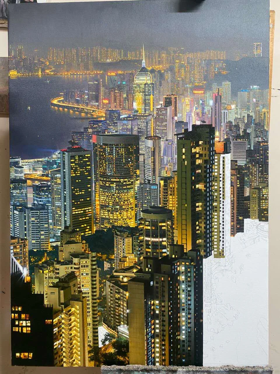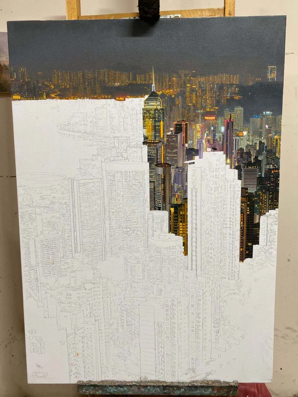 这是一幅安德烈耶维奇接单定制的都市夜景的绘画过程