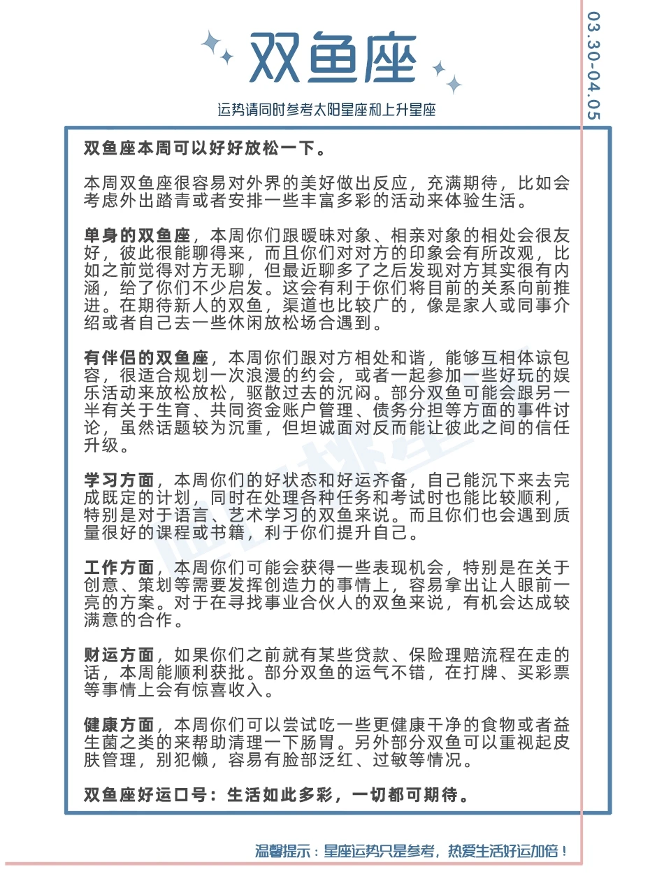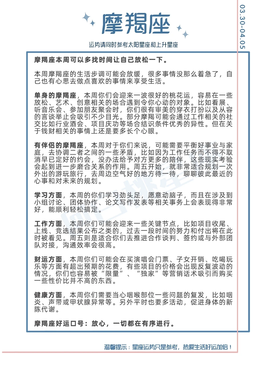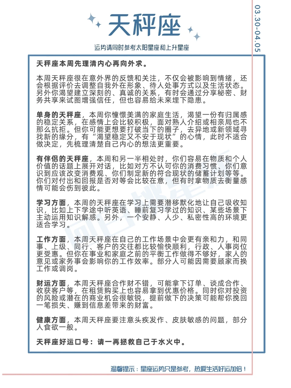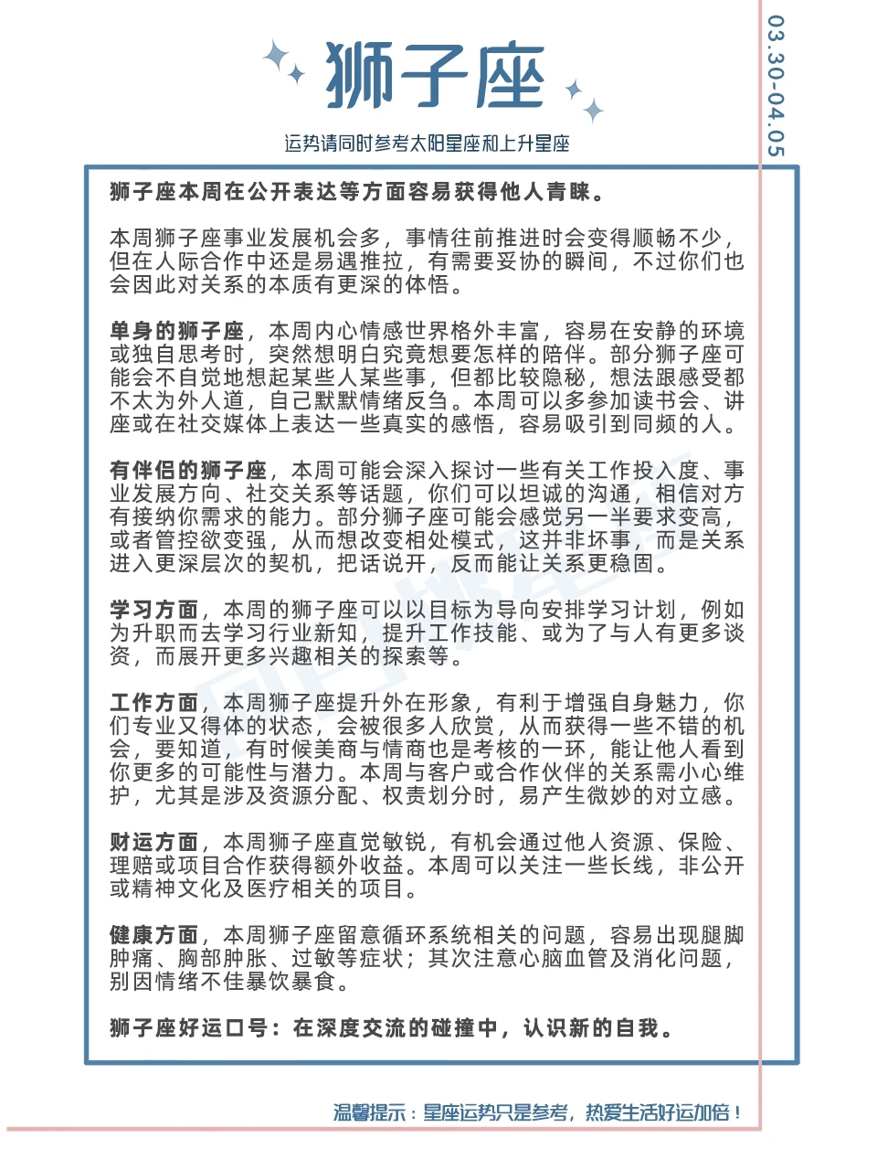 温馨提示:星座运势只是参考,热爱生活好运加倍!
