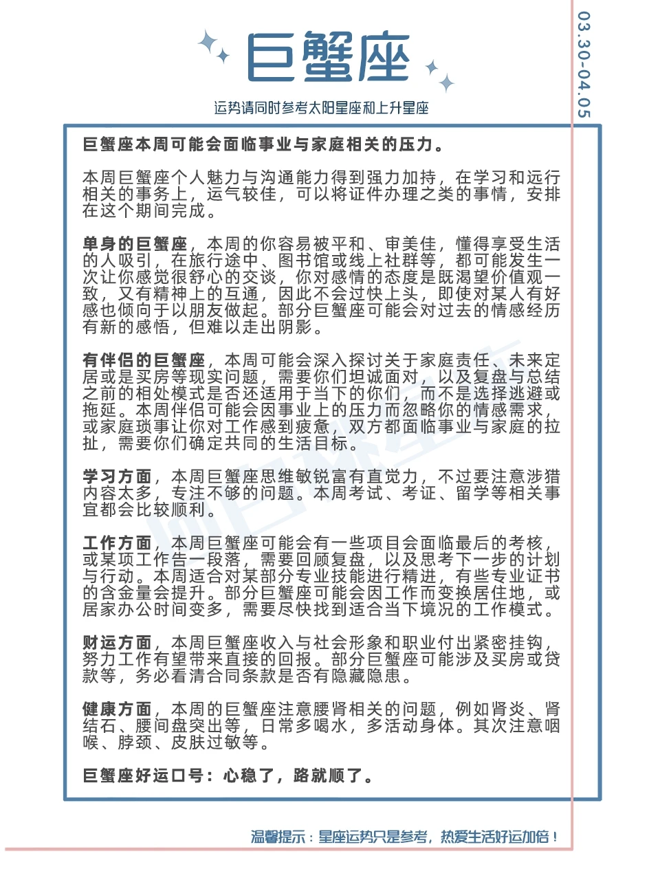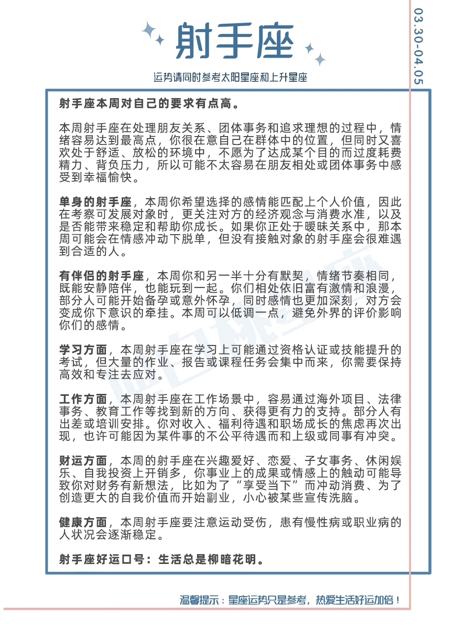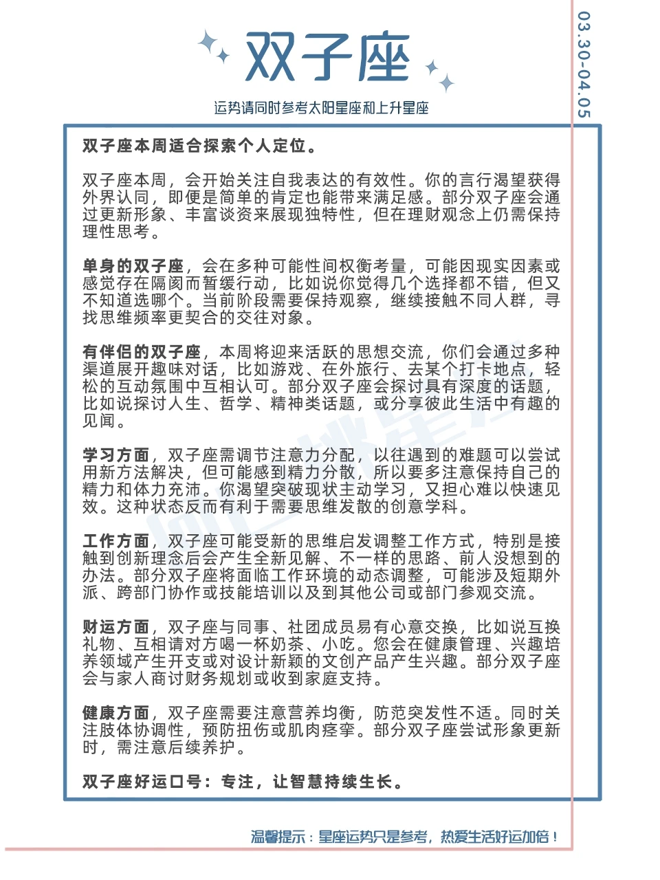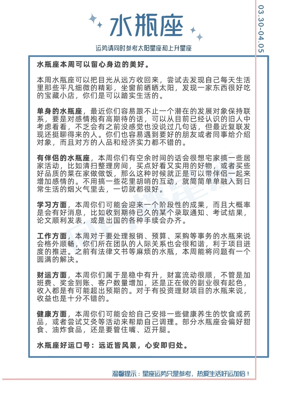 温馨提示:星座运势只是参考,热爱生活好运加倍!