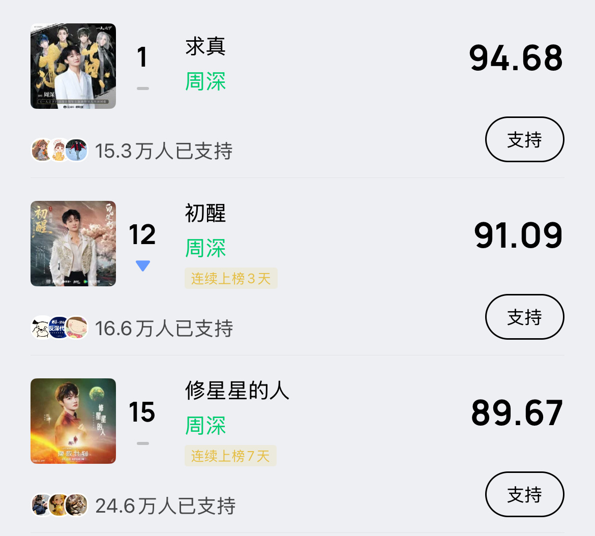 周深 📣 3.30 巅峰潮流 📣米米们晚上好,每歌做6个动作路径:Q音-乐馆-排行-潮流巅峰