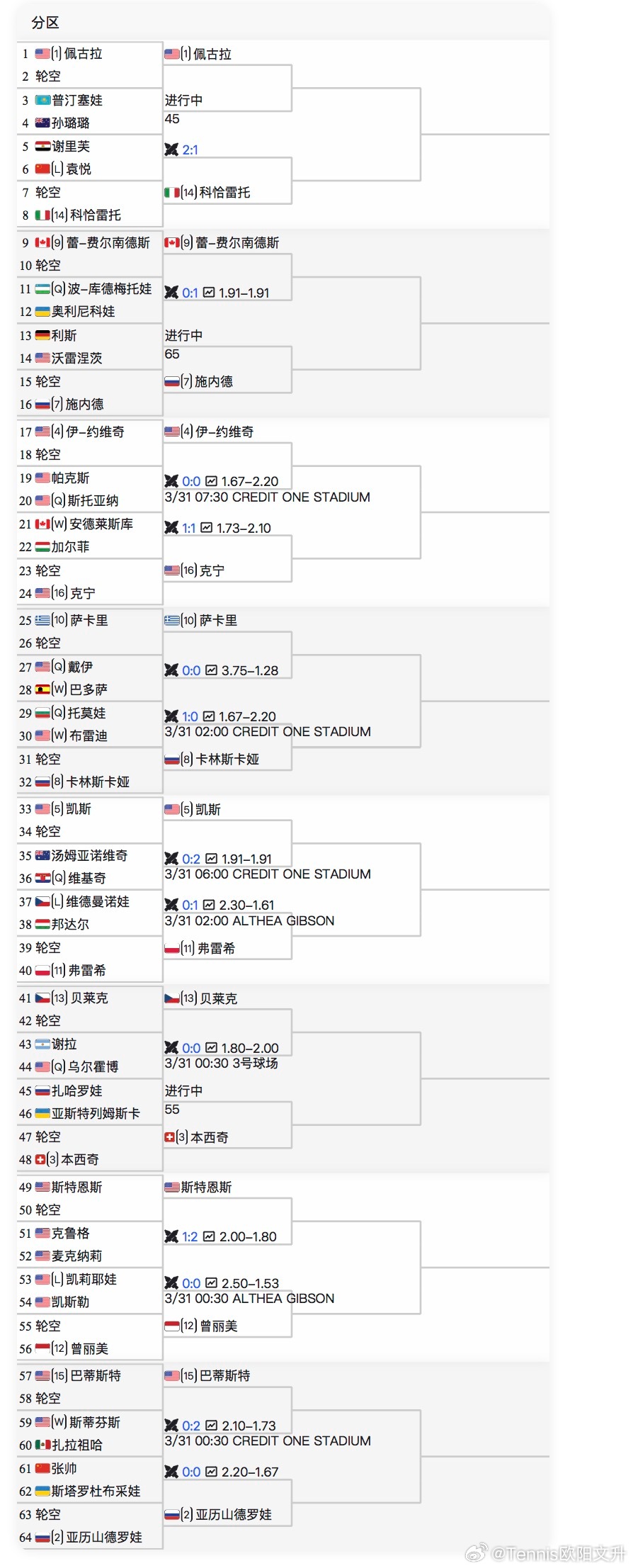🔵WTA500查尔斯顿女单正赛签表更新🇨🇳袁悦以幸运落败者身份落入正赛签表首轮迎战🇪🇬谢里芙