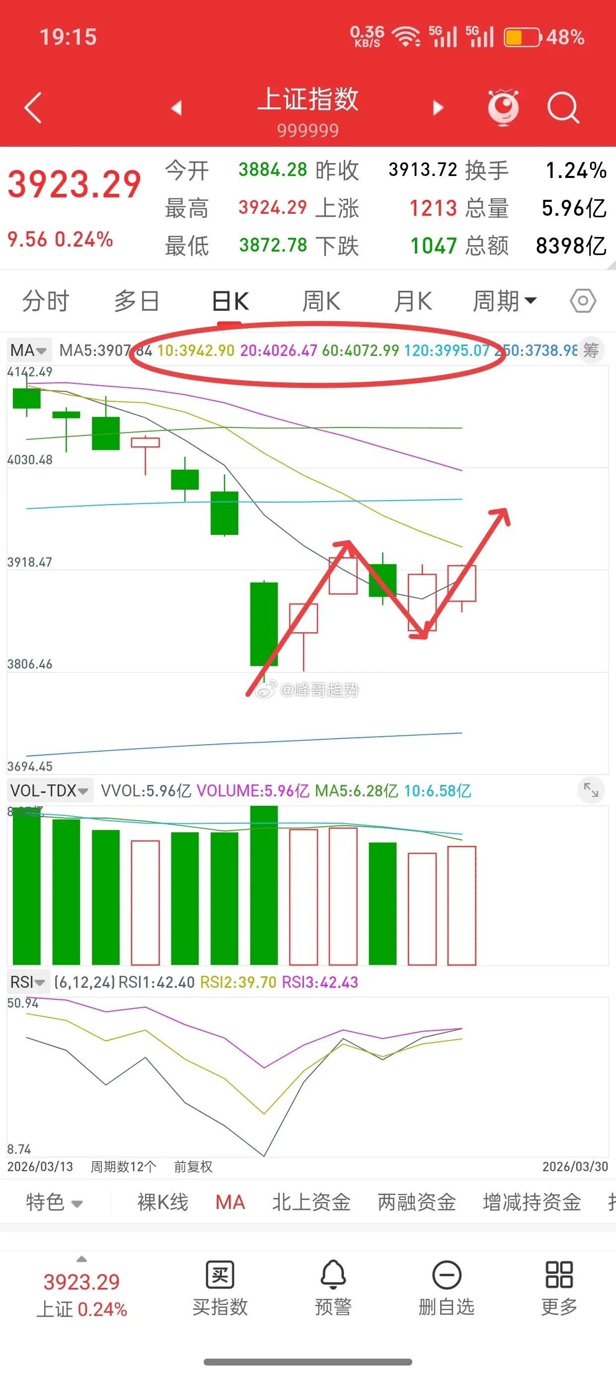 先说观点,大盘已经连续两个交易日站上五日均线,接下来很有可能直接补掉上方缺口3955,明天也是收月K线,大概率也是会往五月均线靠拢。