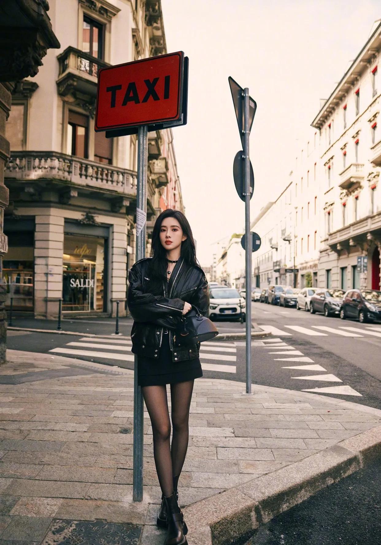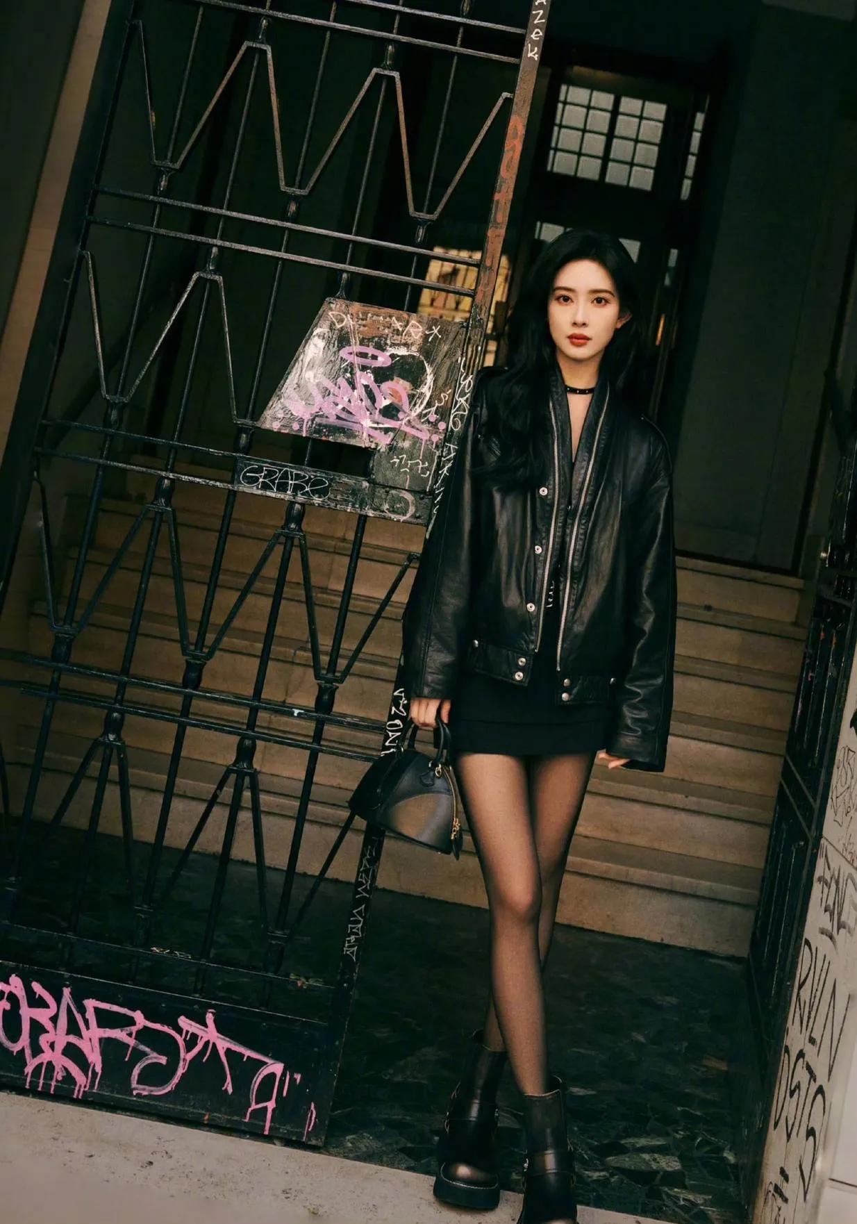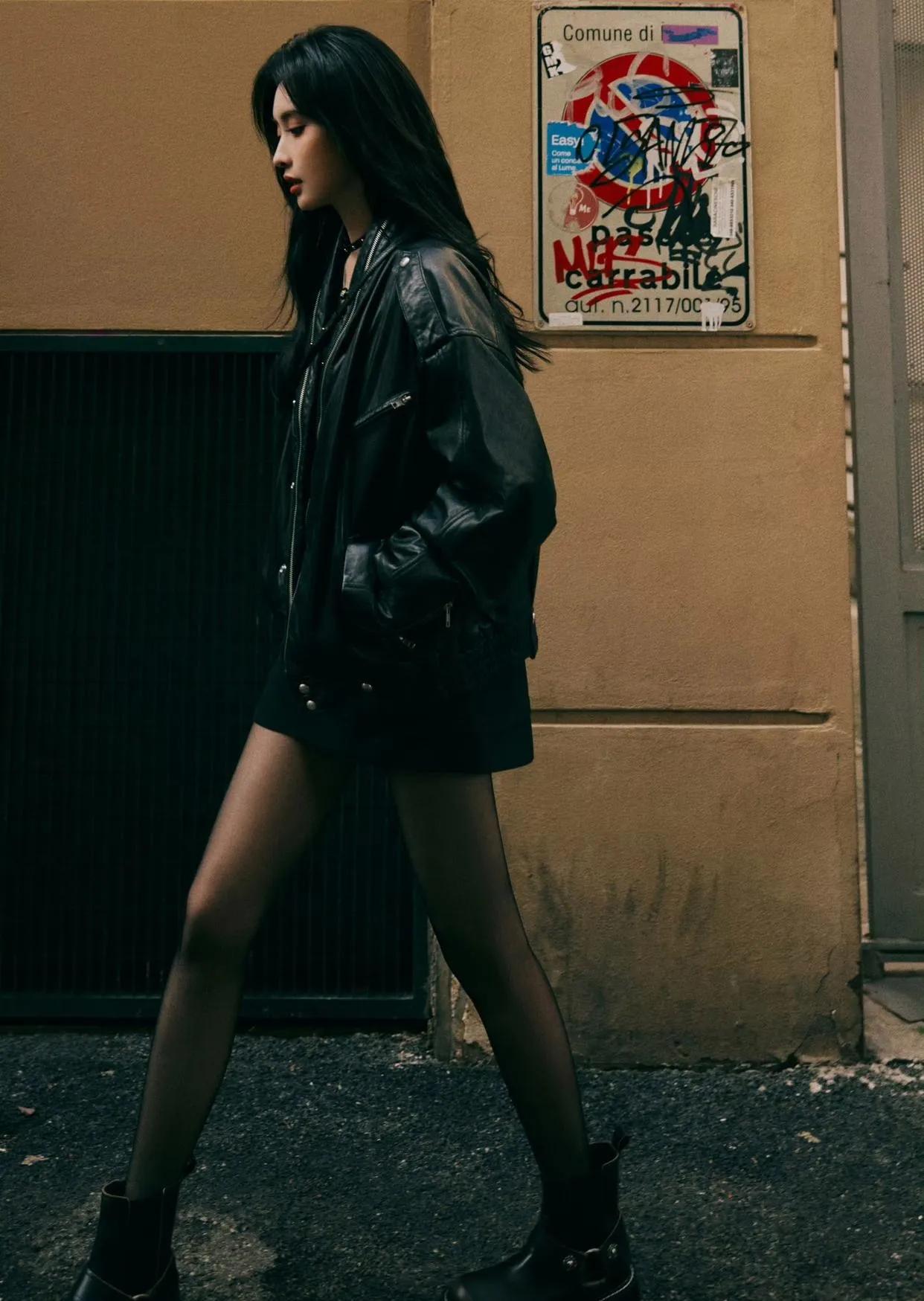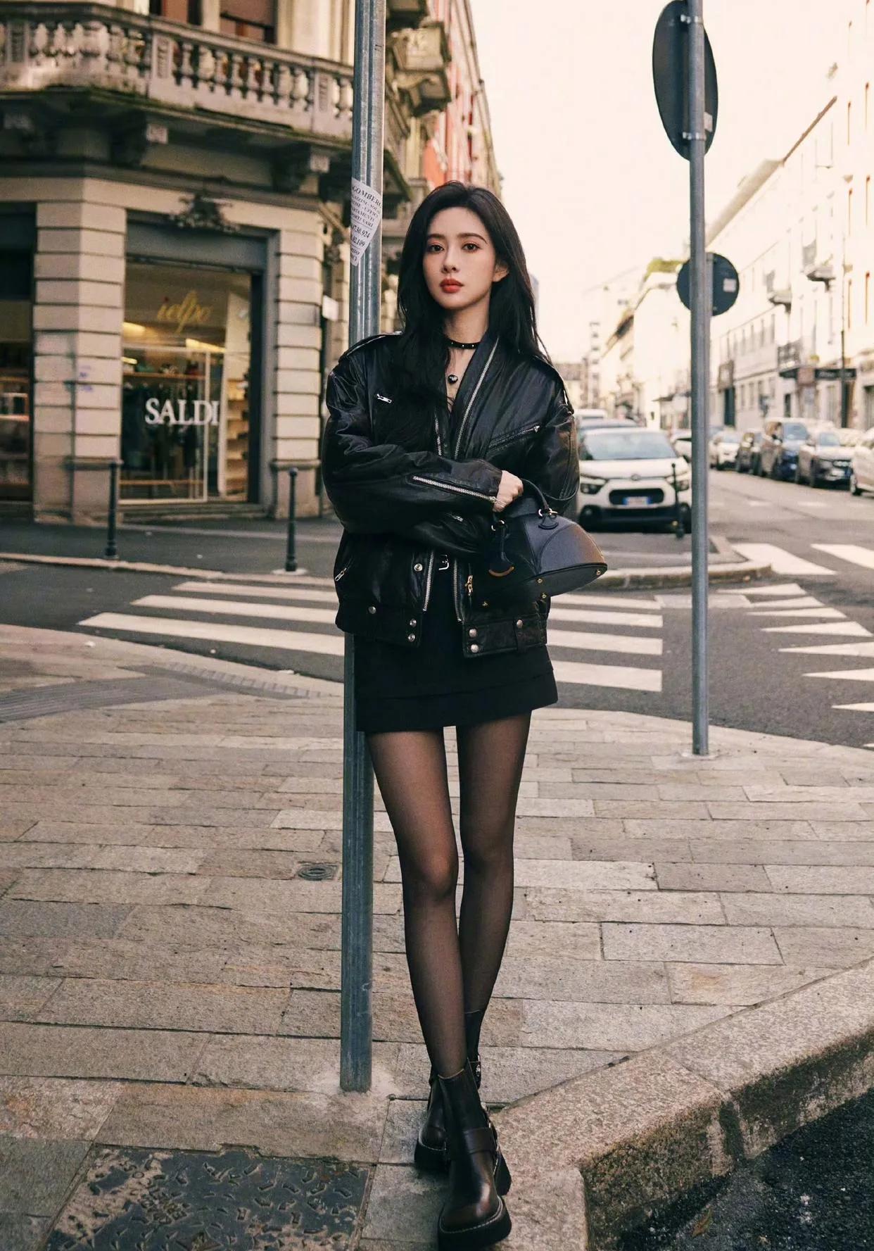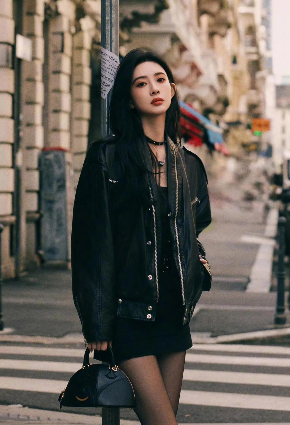 孟子义街头酷飒感拉满🖤 黑丝配短裙+复古皮夹克,孟子义这组街拍也太会了! 冷感黑丝衬得腿又细又直,宽松皮衣中和了甜腻,又酷又欲的反差感直接戳中审美点,漫步在欧式街头,氛围感直接拉满,谁看了不喊一句姐姐太会穿! 孟子义 孟子义穿搭 酷飒风穿搭 女明星私服