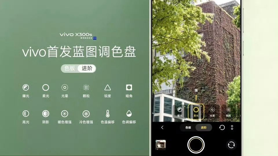 看完vivo这次发布会之后,我对专业V单这个词有了更深层次的理解。因为它不替你决定什么是美,而是帮你把自己的审美拍出来。这次在相机风格方面有了大升级,不仅有十余种经典胶片风格,还新增了追光、浓郁两种全新色调,让用户直出就有胶片氛围,一键就能拍出胶片感。还新增了蓝图调色盘,操作也非常简单,横滑调色、纵滑调影调。提供的5种特效工具,让创作也变得自由,不用修图功底也能拥有属于自己的个人风格。拒绝统一滤镜,尊重每一种审美,这才是移动创作该有的样子。vivo影像是懂审美的