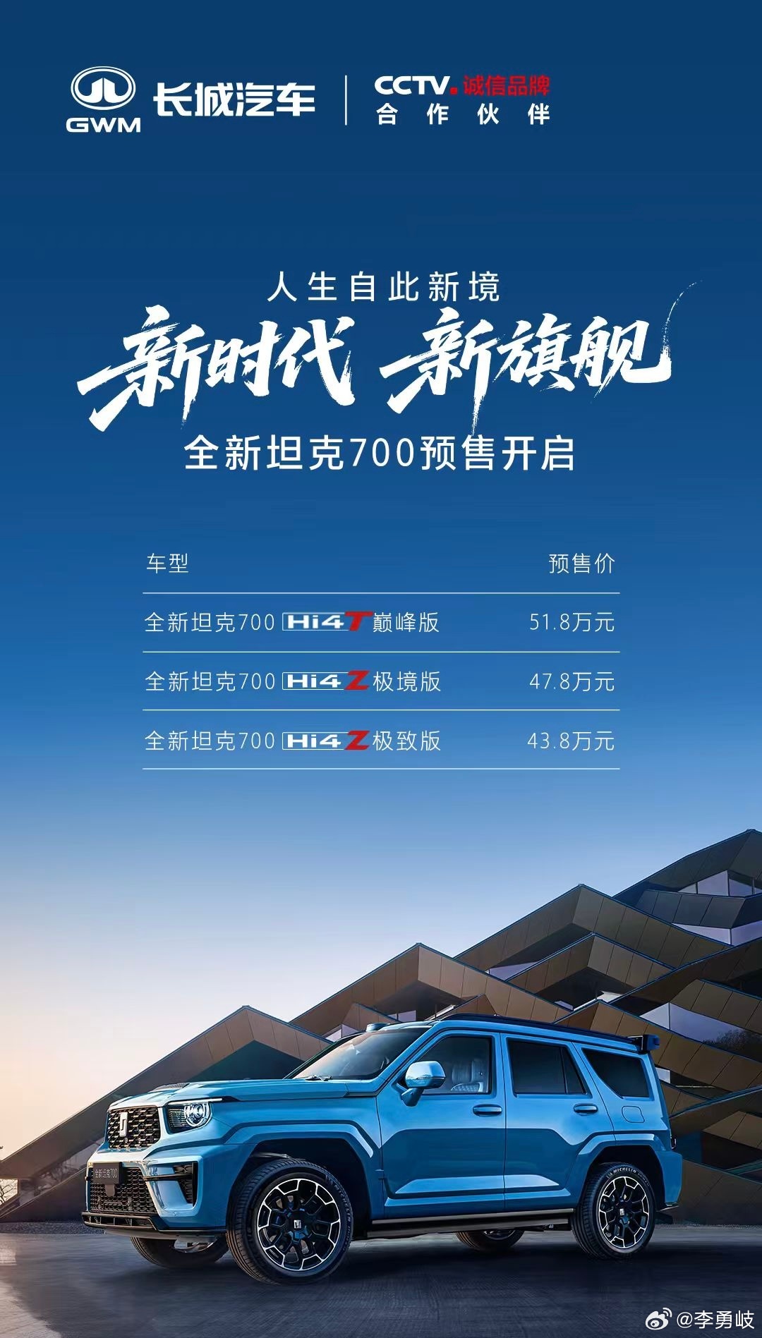 全新坦克700正式开启预售官方预售价43.80-51.80万元!新车定位全域豪华