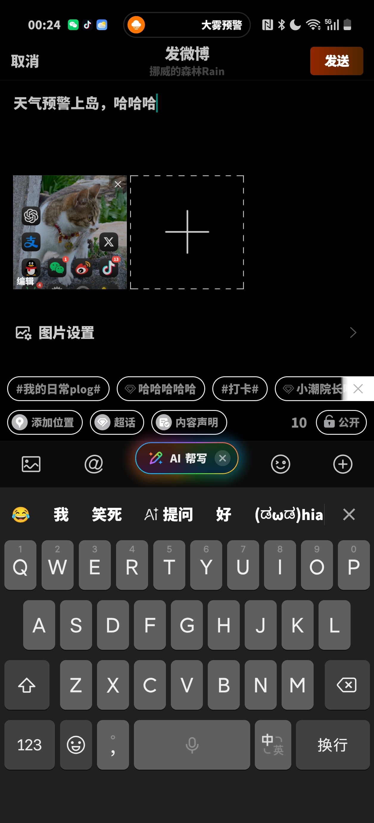 天气预警上岛,哈哈哈