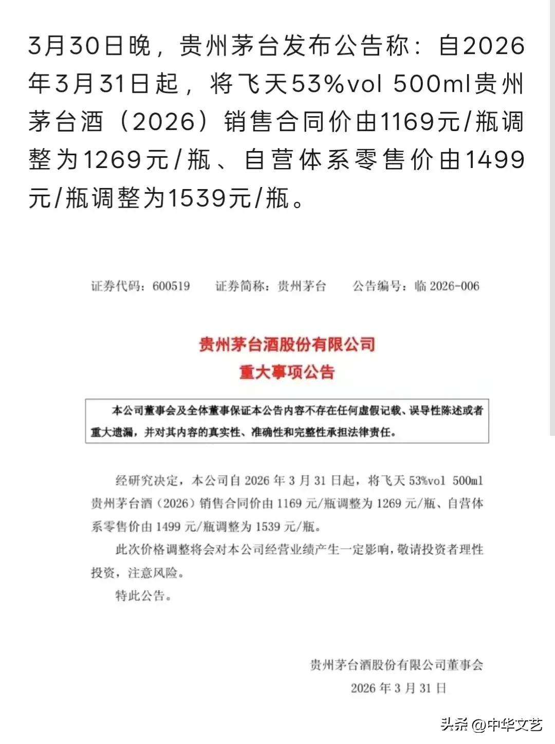 “茅台涨价”是一次“精准调控”式营销。 涨出厂价:意在从渠道回流利润,增厚公司业绩; 微调零售价:则避免过度刺激市场,维护消费基本盘; 限定2026年出厂的产品提价,制造了稀缺性预期,强化了茅台的投资与收藏属性; 此举既保证了短期利润,又维护了品牌长期价值。