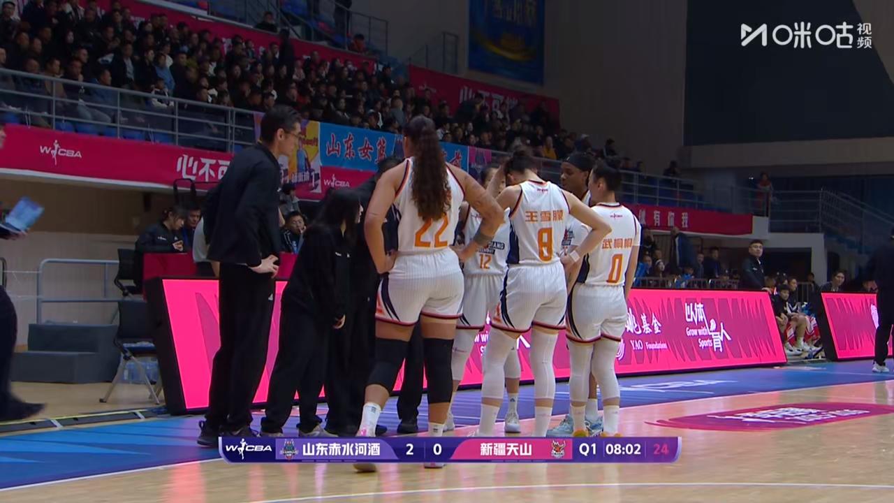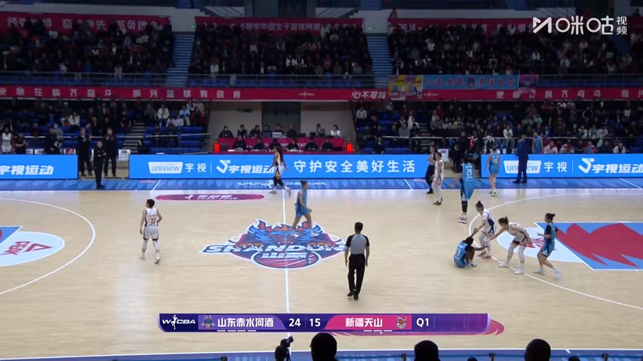 唉😮💨!新疆天山女篮第一节比赛落后! 在刚刚结束的新疆天山女篮客场挑战山东赤水河酒女篮争夺四强的第一节比赛中,新疆天山女篮暂时以15比24落后。 从第一节比赛中可以看到,新疆天山女篮这场比赛不好打,从裁判的判罚尺度下就可以看到了,新疆天山女篮失误多,命中率低。反观山东女篮拼抢积极,毕竟是主场,而且三分球命中率不错。 希望新疆天山女篮客服不利因素,争取好好的打,拿下山东女篮!打进四强!