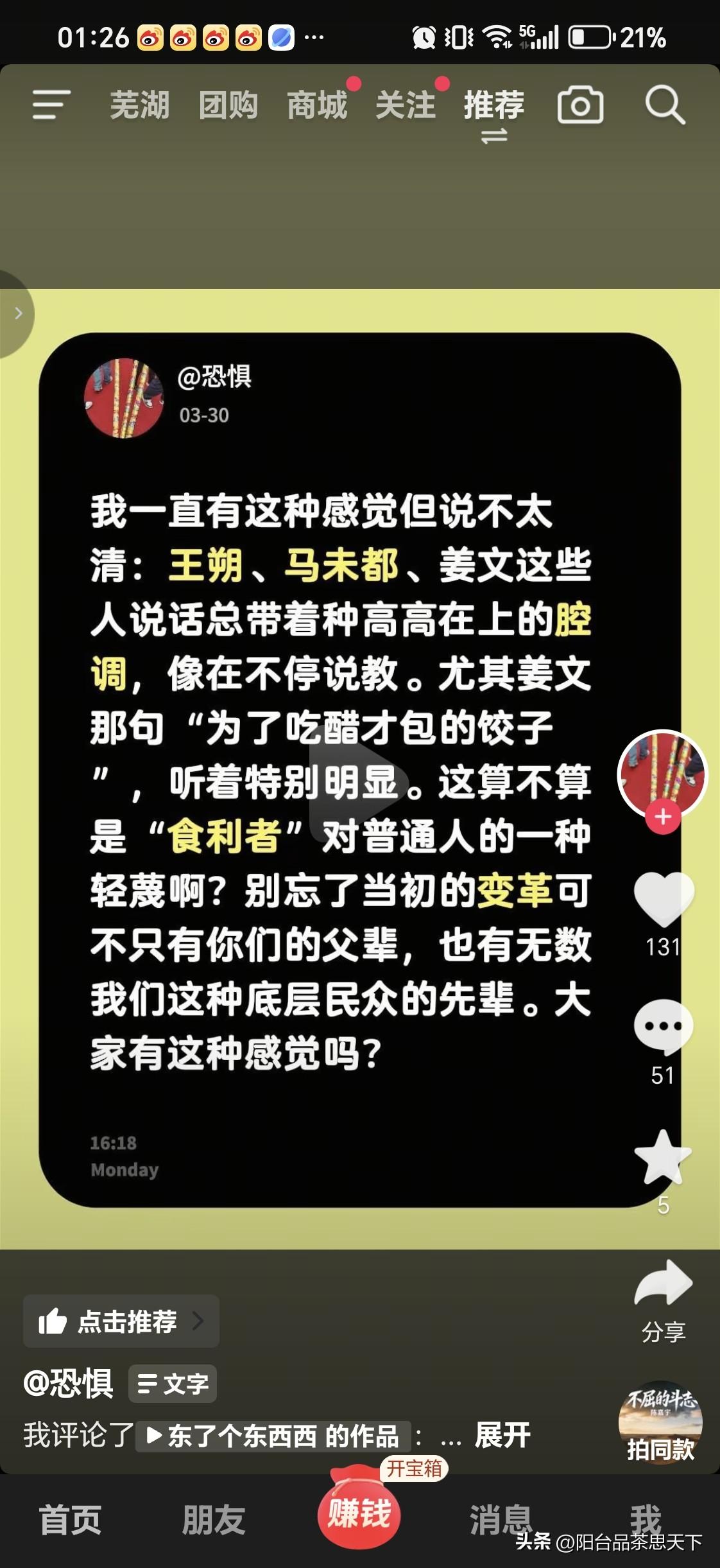 这位网友说的太好了 我来做点补充 网友提到这三个货色说白了其本质是文盲!但却有着无比骄傲的自信,点评社会的各种问题,一副趾高气昂的模样。 尤其是王硕,大言不惭的歌颂老舍的茶馆是什么美国的畅销书。莫名其妙! 一部小学生流水账的长篇作文,既没有分析出时代悲剧发生的原因,也没有提出问题的解决办法,其社会功能和100年前的农村妇女哭丧,没有任何本质区别,这样的流水账就因为同是满族作者,王硕就把他说的很高很高的样子!夹带私货的,卑鄙伎俩只能忽悠小朋友! 当然,给老舍捧臭脚的,比如陈佩斯,那个玩抖音的台湾老头,还有李成儒,这些人说白了,他们社会学知识都是不及格的。 对烂人认知 无文化的人 无文化吃大亏 人间迷惑言论 文盲显摆 我是傻不拉几者 社会愤青