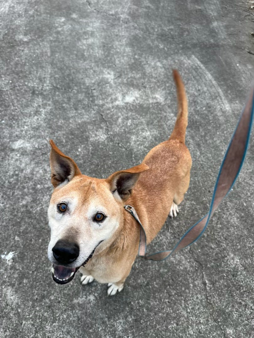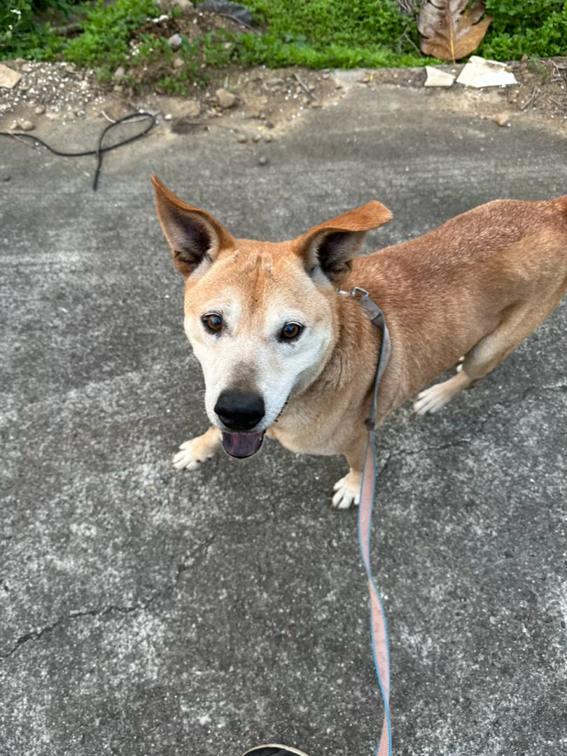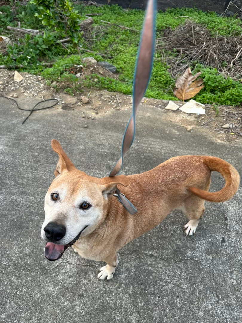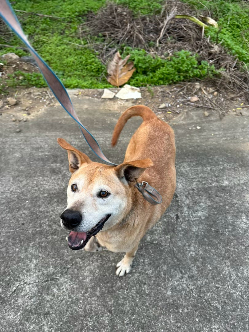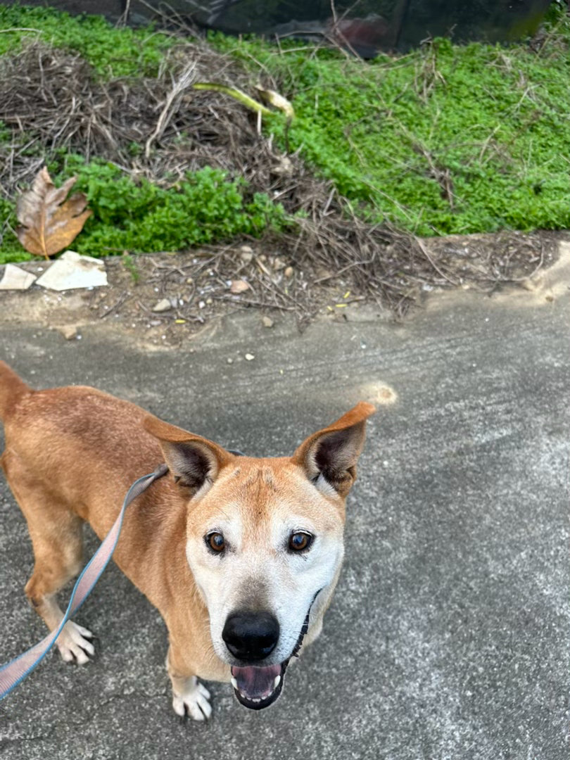 邻居家的狗狗,被亲戚收养后每天都有在他家院子跟后面大花园的自由时间,但今天他们门没关好,他偷溜出来跑到我家溜达,刚好被我遇见,乖乖的跟我回家,还转到肉干,难怪笑得如此开心,要一直幸福下去哦