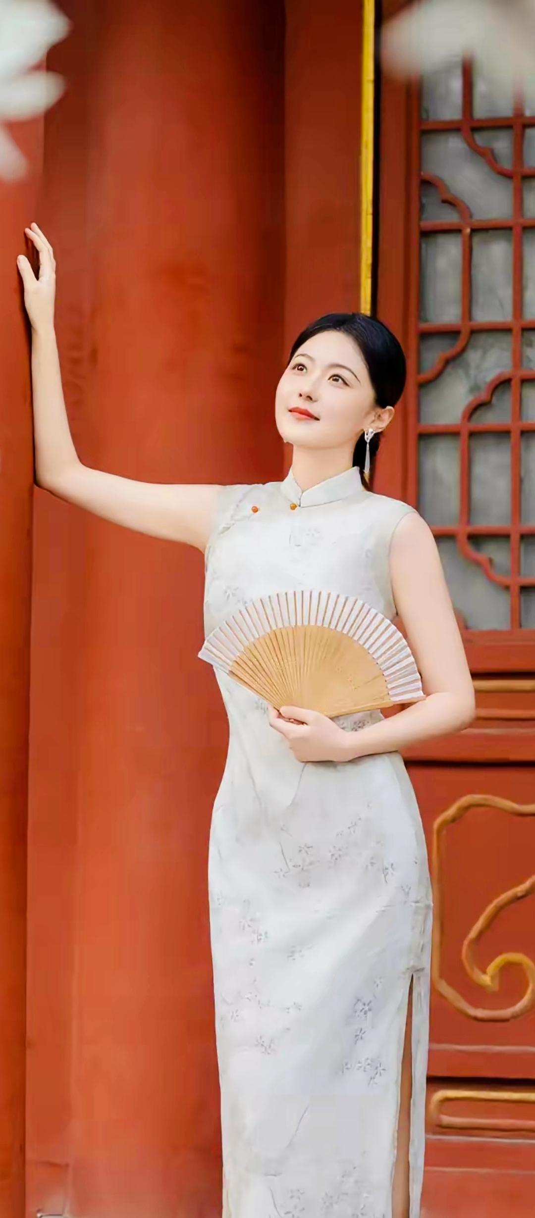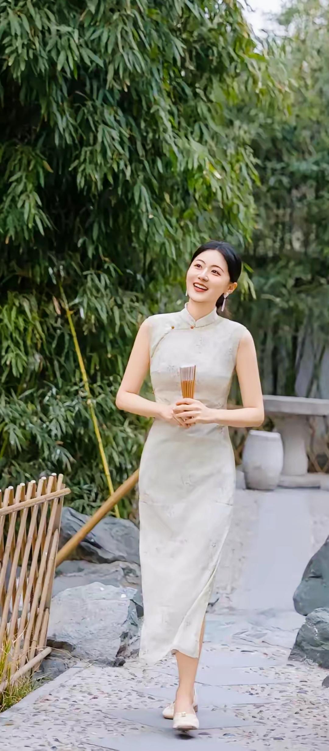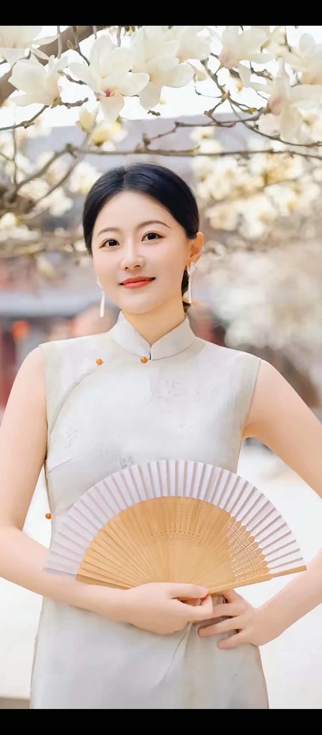 黑裙少女,手持团扇,古风韵味,韵味十足