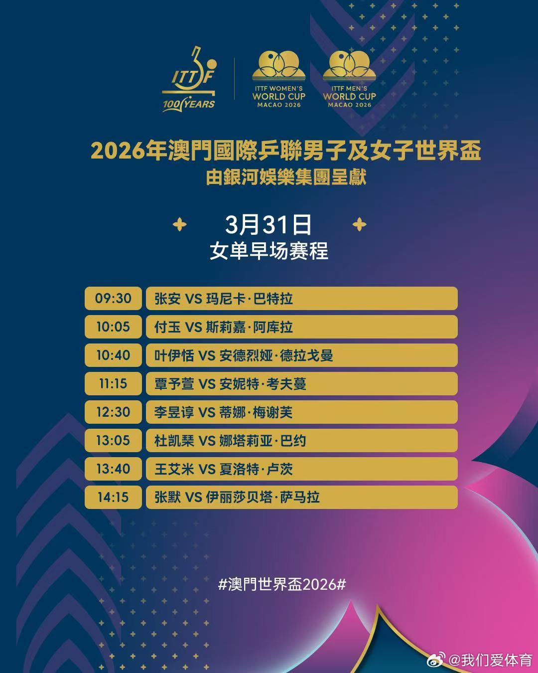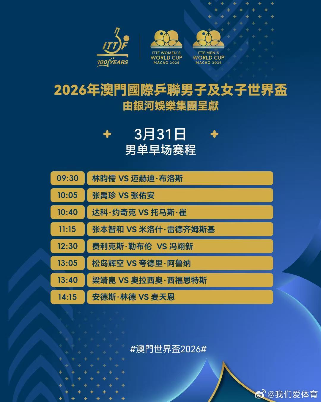澳门世界杯2026 3月31日赛程。中国乒乓球梦之队