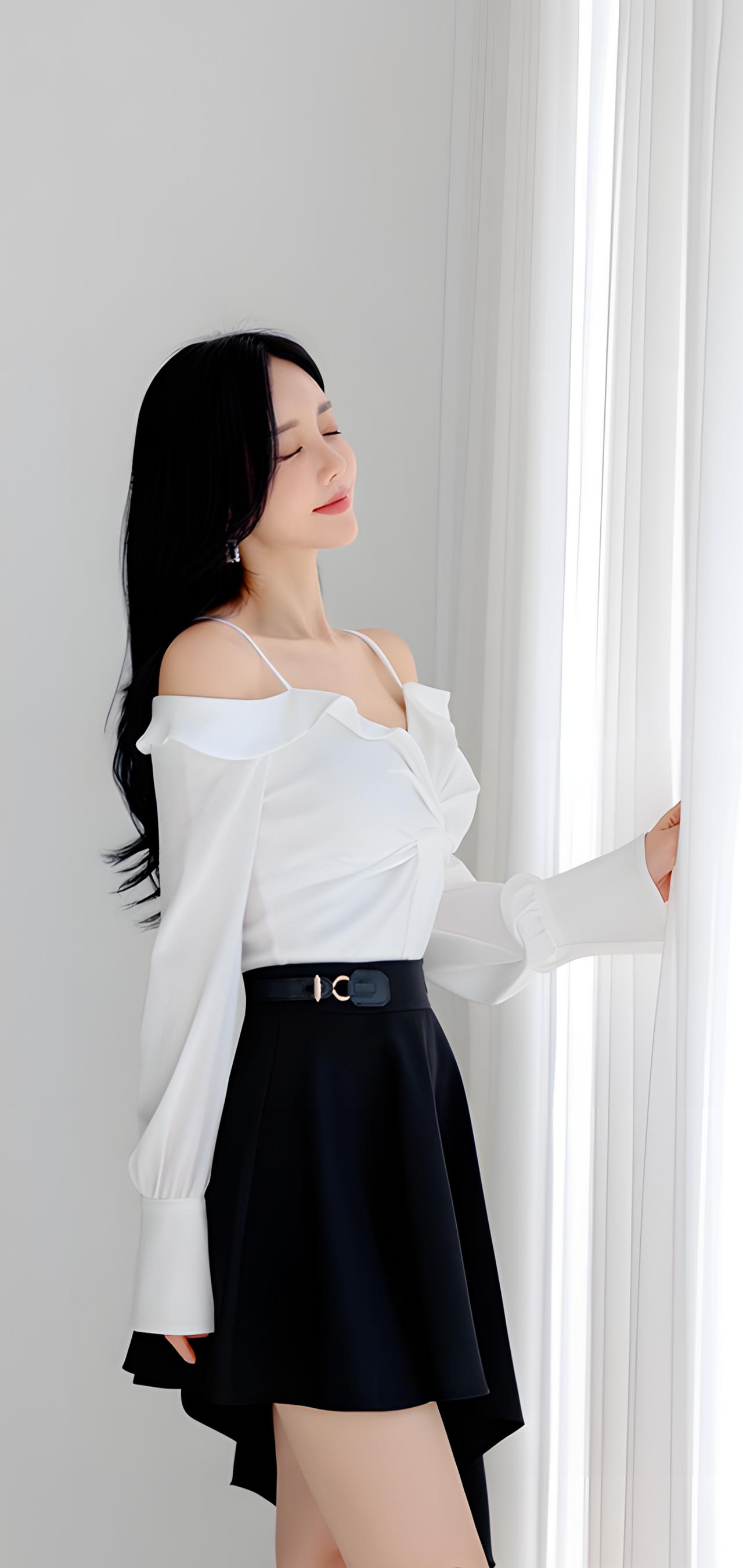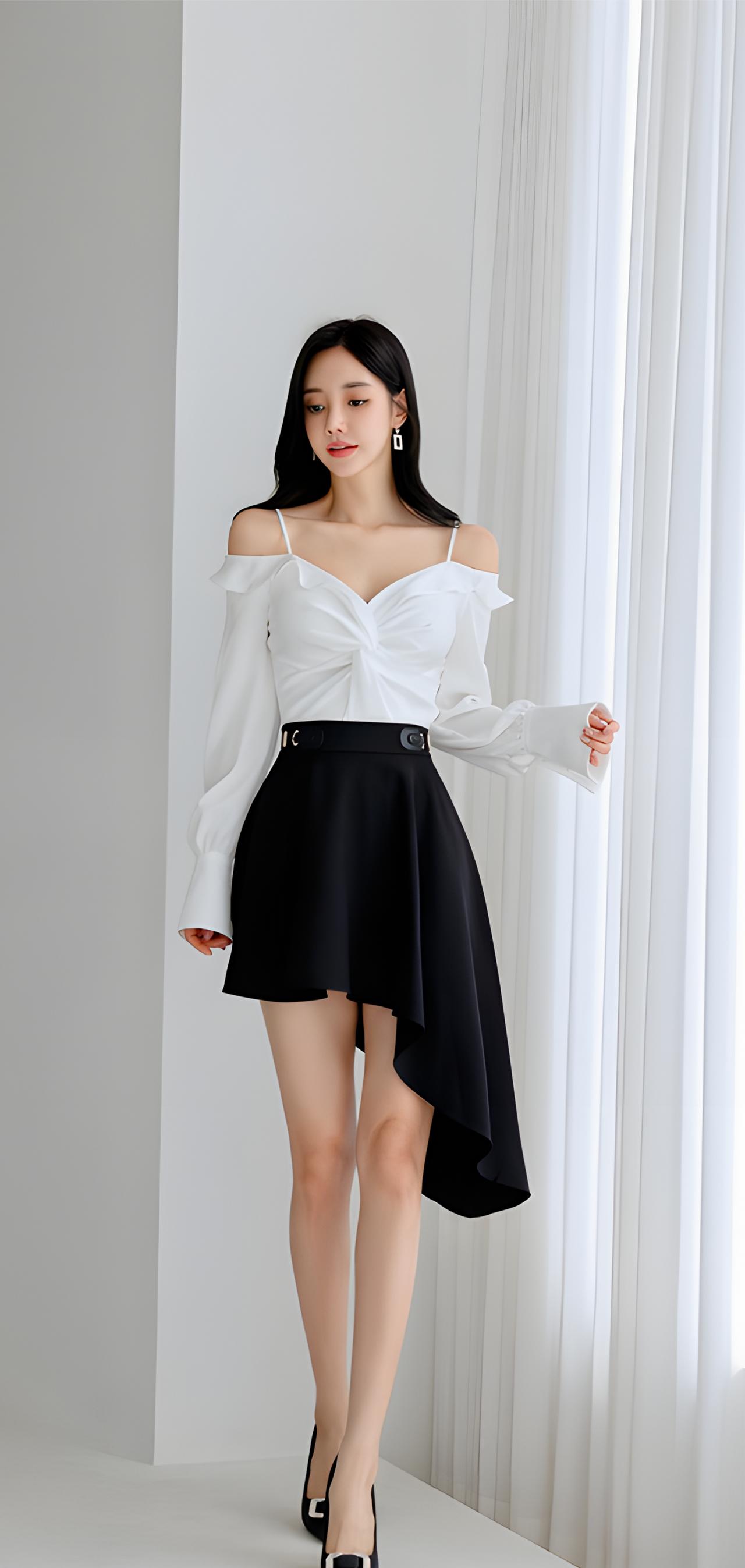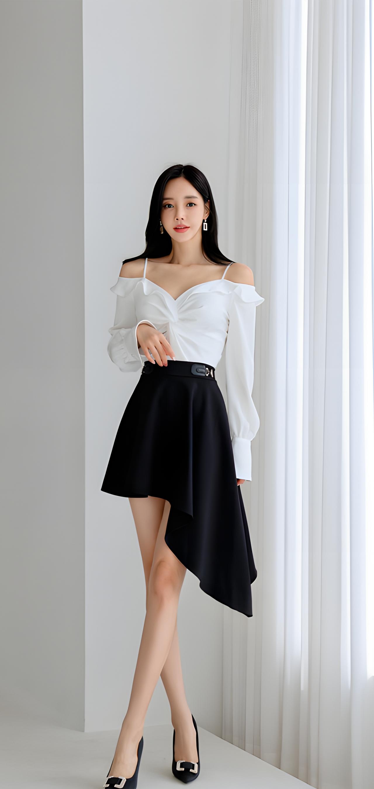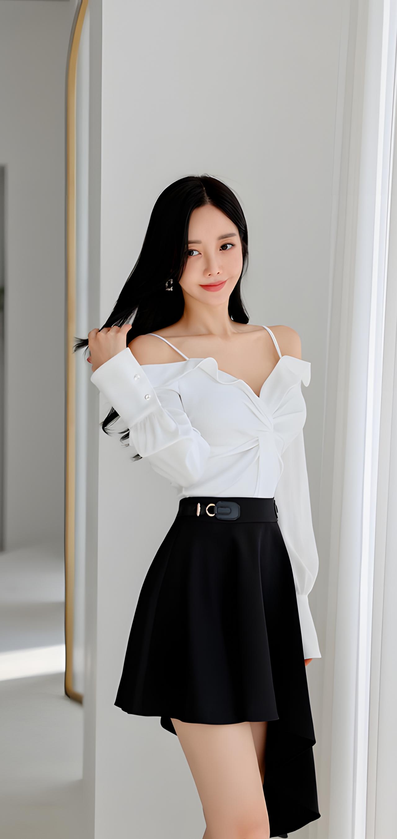 优雅白衬衫+黑色短裙,简约而不失时尚!