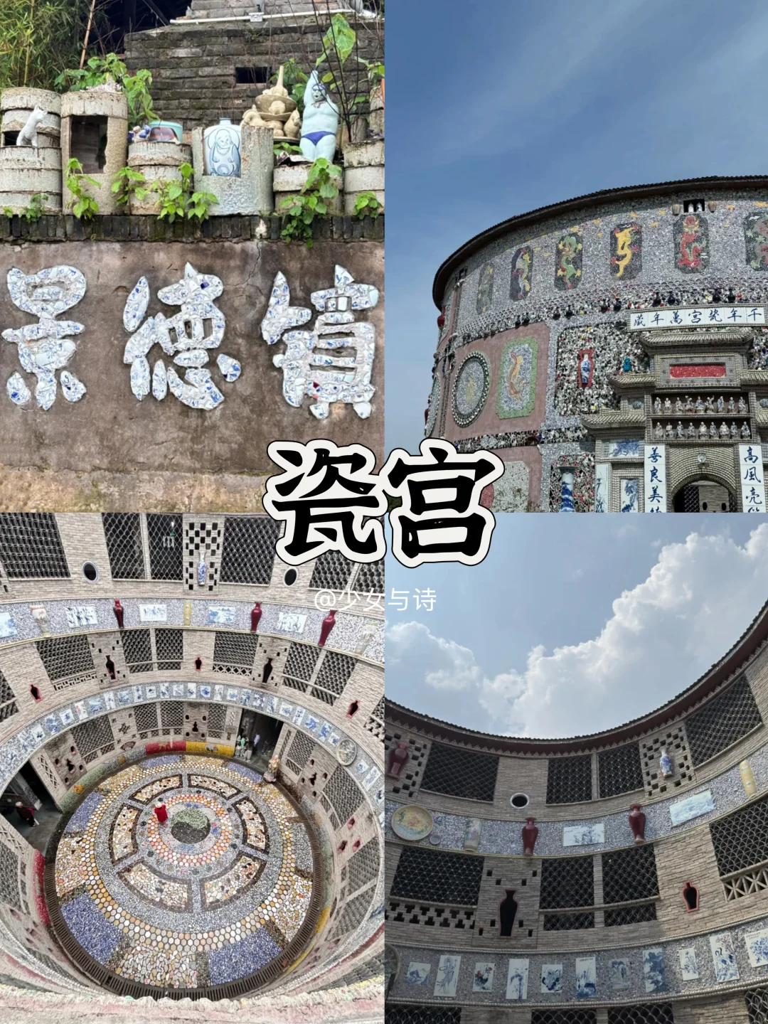 ✨浮梁新平村,“瓷宫奶奶”耗时打造。圆形建筑外墙嵌6万余件瓷瓶、瓷碗等,陶瓷艺术与建筑融合的打卡地。
