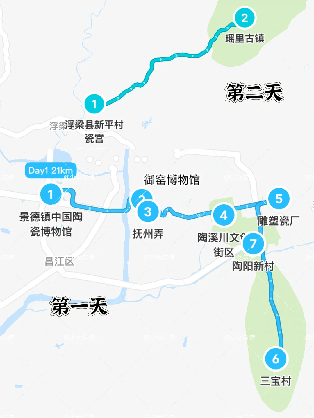 🚗景德镇里村汽车站每日2班(7:30、14:00,13元)从瓷宫打车68元40分钟。