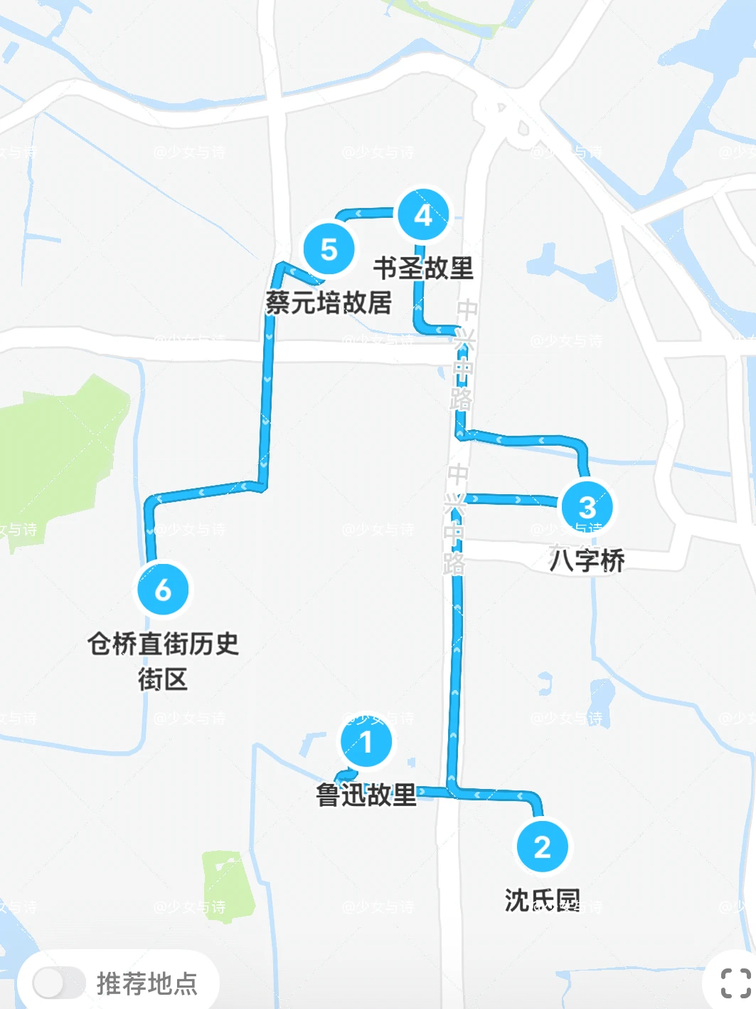 鲁迅故里👉沈氏园👉八字桥👉书圣故里👉蔡元培故居👉仓桥直街