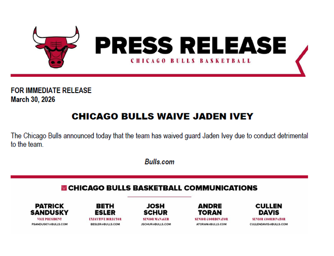 ▲公牛官方裁掉艾维的公告里说的是艾维的行为损害了球队