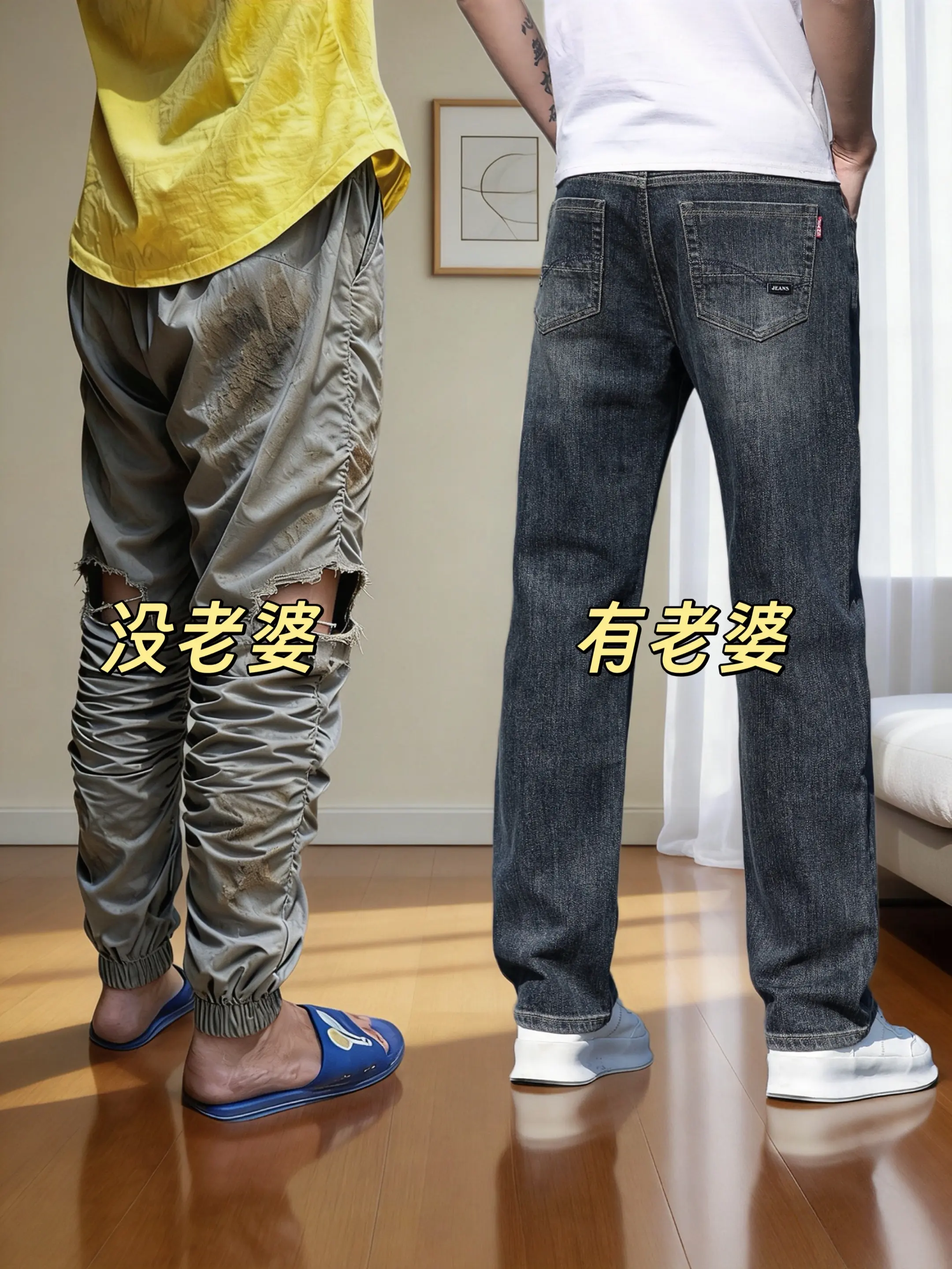 牛仔裤搭配男生的裤子应该怎么选轻熟穿搭直筒牛仔裤男款腿粗腿短男...
