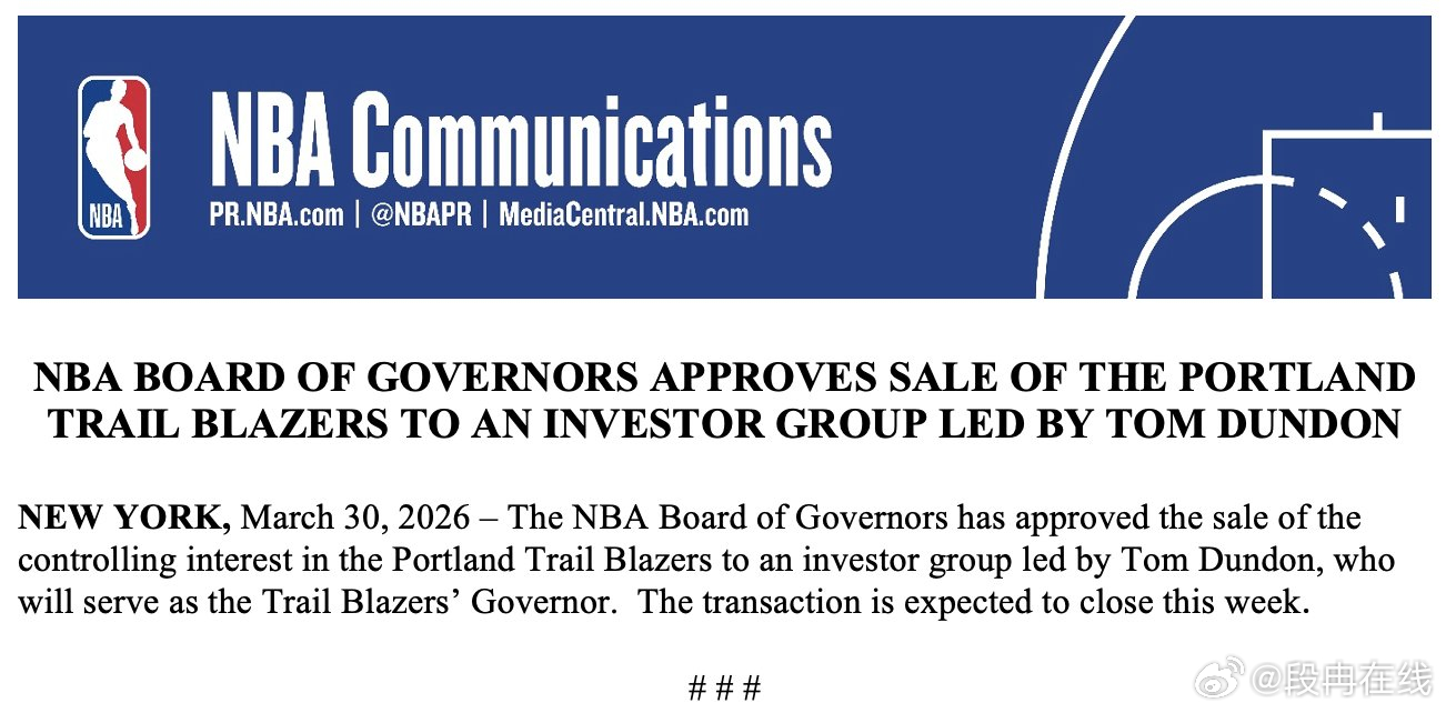 NBA官方已批准开拓者队将控股权出售给由汤姆-邓顿(Tom Dundon)领衔的投资集团。目前,开拓者市值超过40亿美元。