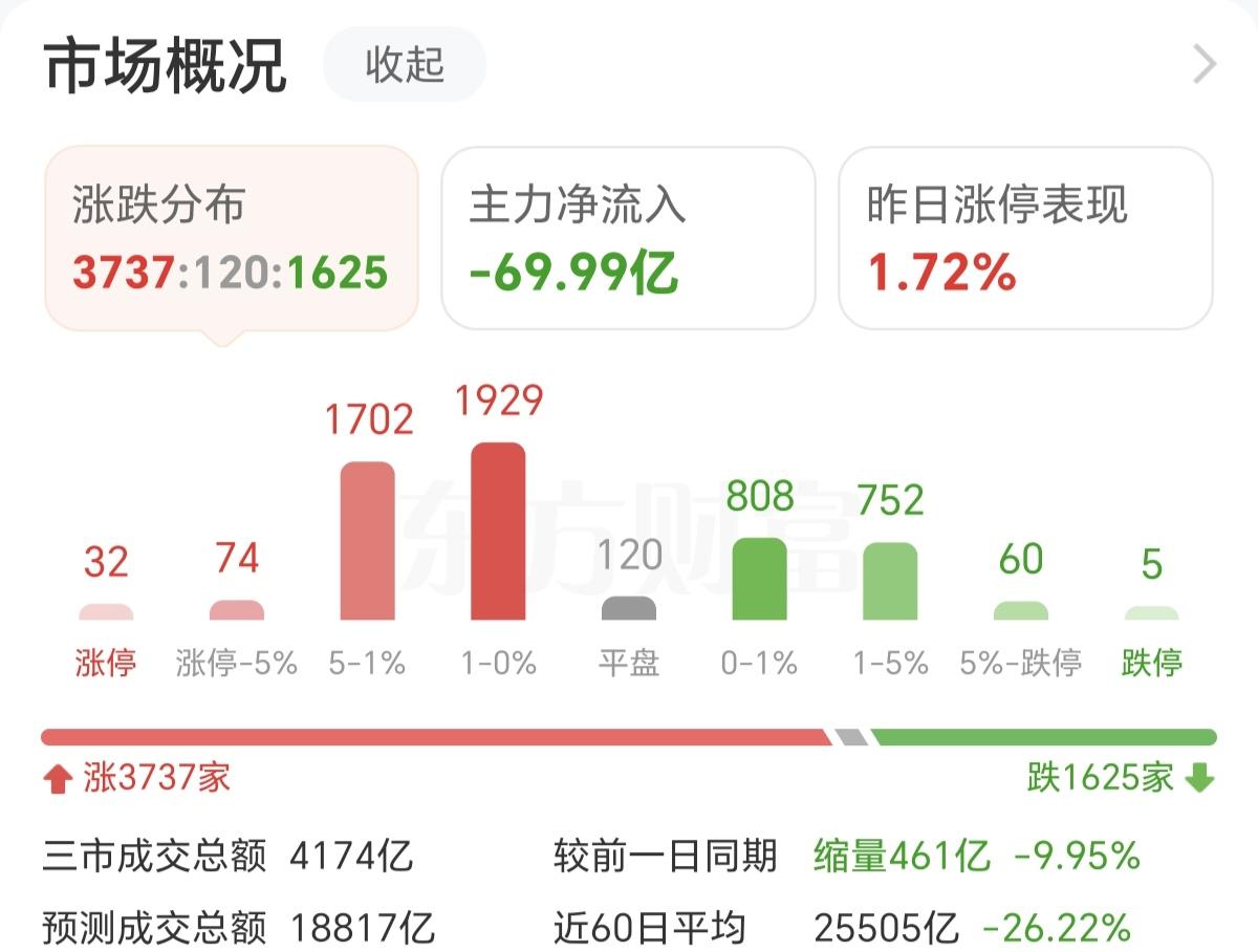 成交量还在缩量,已经连续3天成交量在2万亿以下了,而且主力资金一直在出逃,这种缩量上涨,风险是很高的,很容易出现跳水,目前还是在拉上证指数,深和创都是绿的,说明还是在拉权重,科技还是比较弱,没啥人气参与。 这种走势上涨乏力,谨防10点,量化开始工作,出现冲高回落大跳水。