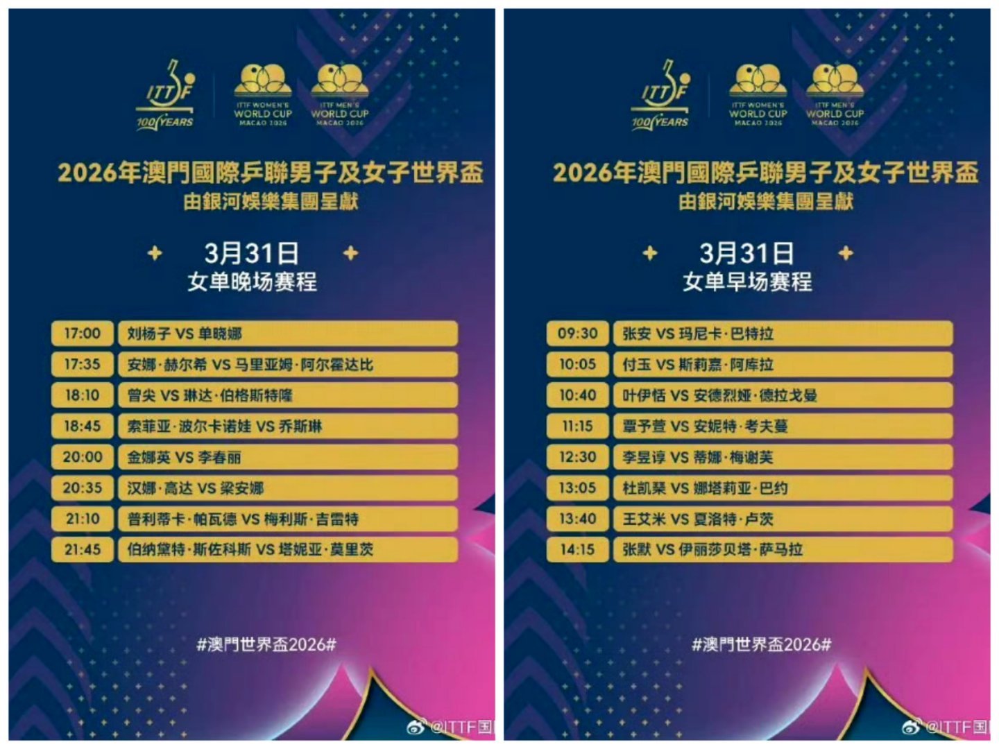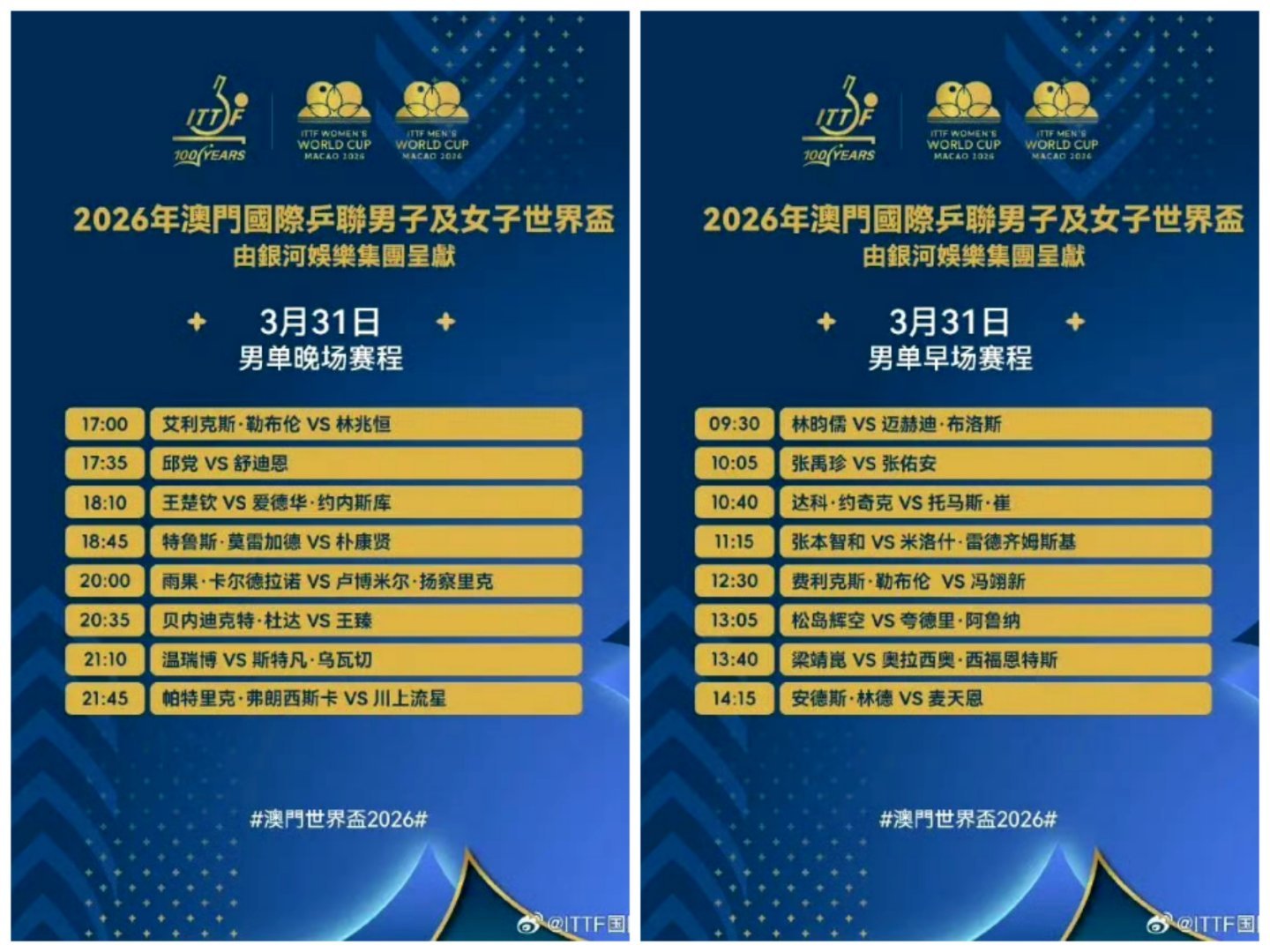 国乒澳门世界杯31日赛程3月31日澳门世界杯,国乒四将出战,王楚钦澳门世界杯首战王楚钦18:10迎首秀 。作为世界第一与头号种子,对阵约内斯库优势明显,目标小组出线与冲冠。首日全胜士气正盛,今日大头首秀是焦点,期待他快速进入状态,拿下胜利,延续国乒不败势头,为后续比赛打好基础。