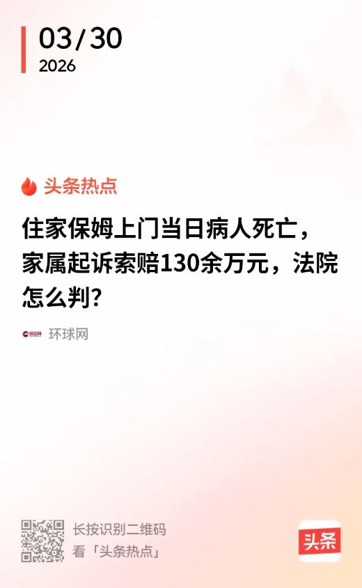 “讹天讹地讹空气!”江苏淮安,老人脑干出血,还处于昏迷中,家属就把他带回家,然后马上找了一个住家保姆,结果保姆刚来,老人当天下午就离世了,家属就起诉保姆和家政公司,要求赔偿132.7万。 江苏淮安有位老人,脑干出血,在医院躺了很久,出院的时候还昏迷着,按理说这种状态,家属心里应该有数,后续护理肯定是个精细活。 但也不知道是家里实在腾不出人手,还是觉得请个保姆就能搞定,5月8号刚把人从医院弄回家,11号就火急火燎找了个住家保姆,通过平台签了合同,约定好就是干些打扫卫生、照顾病人的活儿。 第二天,保姆尹大姐头一回上门,按合同要求给老人擦洗身体、按了按摩,干的都是些最基础的活,结果当天下午,老人就没了。 这事情一出,家属彻底炸了,他们觉得保姆肯定没伺候好,平台推荐的人也不靠谱,不然人怎么刚交到她手里就没了?一纸诉状把保姆和家政公司全告了,张口就要132.7万,还把那7300块服务费也算进去,要求一并退还。 132万对7300块,这账算得让人倒吸一口凉气,案件到了法院,法官要理清楚这责任到底在谁,仔细看了合同,上面写得明明白白,“照顾病人”就是指日常起居,不是让你干护士医生的活。 保姆擦身按摩,确实没超出这个范围,关键是家属拿不出任何证据证明人家操作有什么问题,也没法证明老人离世跟保姆干活有直接关系。 更关键的是,法院还查到一个细节,老人出院的时候,医院已经说得很清楚,这病情危重,转运回家风险很大,家属当时是签了承诺书的,自愿承担后果,既然都知道风险,还把需要专业医疗护理的重症病人交给一个普通家政保姆,这选人的责任到底该谁负? 最后法院判了,家政平台把7300块服务费退给家属,至于那132.7万的赔偿,一分都不支持,家属不服上诉,二审还是维持原判。 这件事在网上炸了锅,有人替家属惋惜,觉得人没了还要折腾官司,有人觉得保姆冤,干了一天活就摊上百万官司。 说到底,这就是一个责任边界的问题,普通保姆干的不是专业护士的活,签合同的时候白纸黑字写清楚了。 家属明明知道老人情况特殊,不去找专业护工,却把希望寄托在一个刚上门的保姆身上,出了事就把所有责任往外推,这种心态本身就值得掂量。 法院最后那7300块的退款,算是对家属的一种安慰,但也给出了一个明确的信号:谁的错谁买单,不能把亲人的离世,变成一场算计。