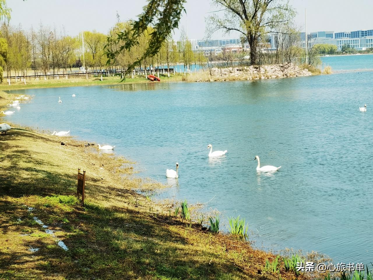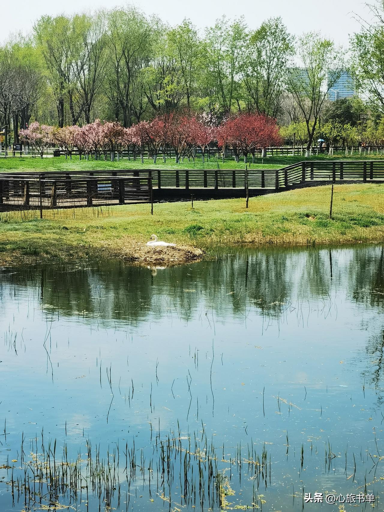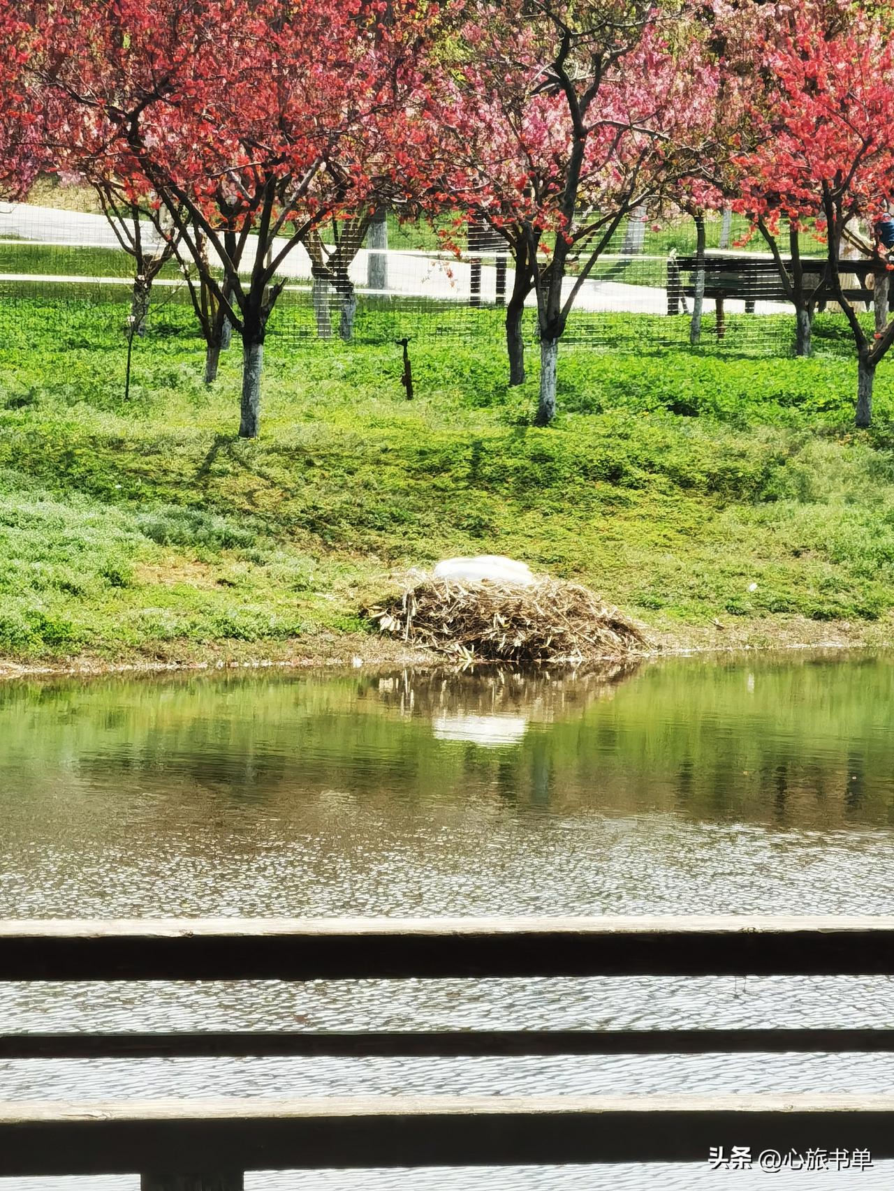 我的今日状态:😁轻松愉快 我这里的天气:☀️晴天 天气晴好,阳光明媚,春意盎然,到处一派春天的新气象。带着孩子,驾车二十三公里来到森林公园。路两旁停放满了车,因为里边停不下了。 进到园里,很多人躲在自带的野外帐篷下,吃着小吃和瓜果,享受难得的清闲和舒适。 最开心的是小朋友在碧绿的草地上撒欢嬉戏。 吊床晃动着童趣,风筝舞在天空,树荫下洒满一地的笑声…… 我们远远望去一片清澈的湖水,水面上阳光洒下一片金黄,波光粼粼。疣鼻天鹅的乐园,每年的三四月份他们要在这里繁殖孵化下一代,上百只天鹅组成一副壮美的画卷。 据说疣鼻天鹅体型硕大,它们对爱情忠贞不渝,一对儿夫妻相伴一生,不离不弃,这不你会看到一只天鹅孵蛋,另一只在旁边陪着或者负责觅食。 过了大约一个月后,小天鹅破壳而出,随着父母慢慢长大。 好可爱的一副春景图,好有诗意的人与自然和谐共生!