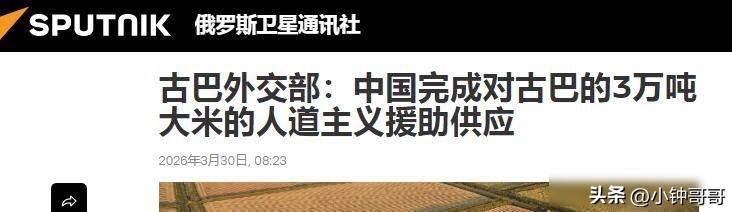 古巴强援到!中俄联手送完原油送大米,美军不敢拦,特朗普也敢声 这艘装载着七十三万桶俄罗斯原油的油轮,在美国公开警告的情况下,平稳驶入古巴港口,全程没有受到任何拦截和驱赶,船体稳稳靠岸后,油罐车便开始了卸货工作。 就在那个时刻,中国的最后一条运输粮食的船只到达了哈瓦那港口,船上装载的三万吨大米都交给了当地,这是中国方面答应援助粮食的最后一次运送,也是古巴现在最需要用来维持生活的食物。 电力系统快要撑不住了,粮食库存也快用光了,这两批物资,真的成了稳住局面的关键,特朗普以前说过“古巴是下一个目标”,现在却一句话也不提,美军没有行动,中东那边情况紧张,国内抗议活动扩展到三千个城市,连导弹仓库都快空了。 中俄两国按照原本的计划向前推进,美国方面没有采取任何行动,当油轮慢慢靠近港口的时候,周围安静得反而让人心里觉得沉甸甸的。 古巴能源危机 中俄援助
