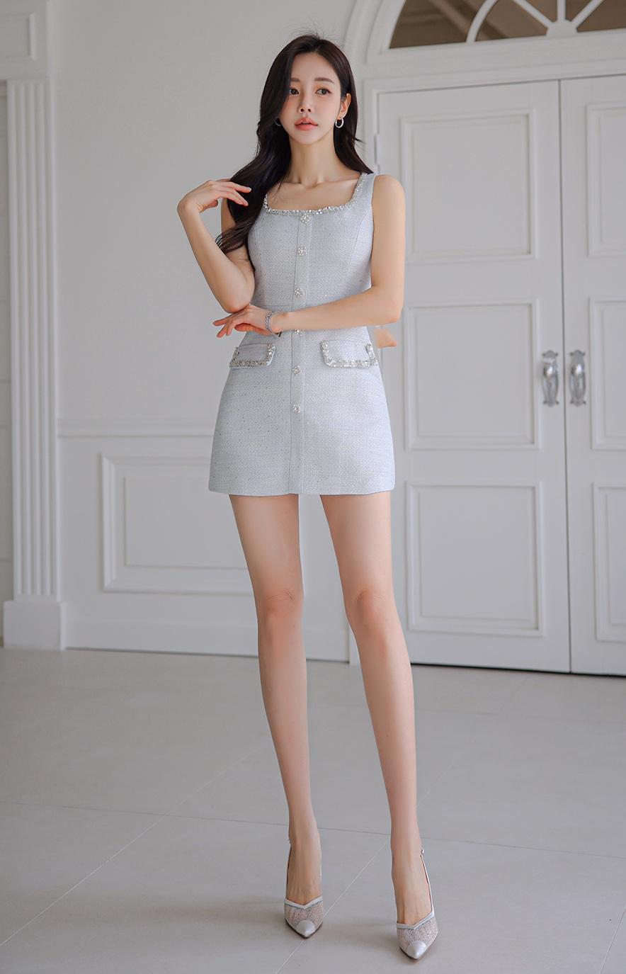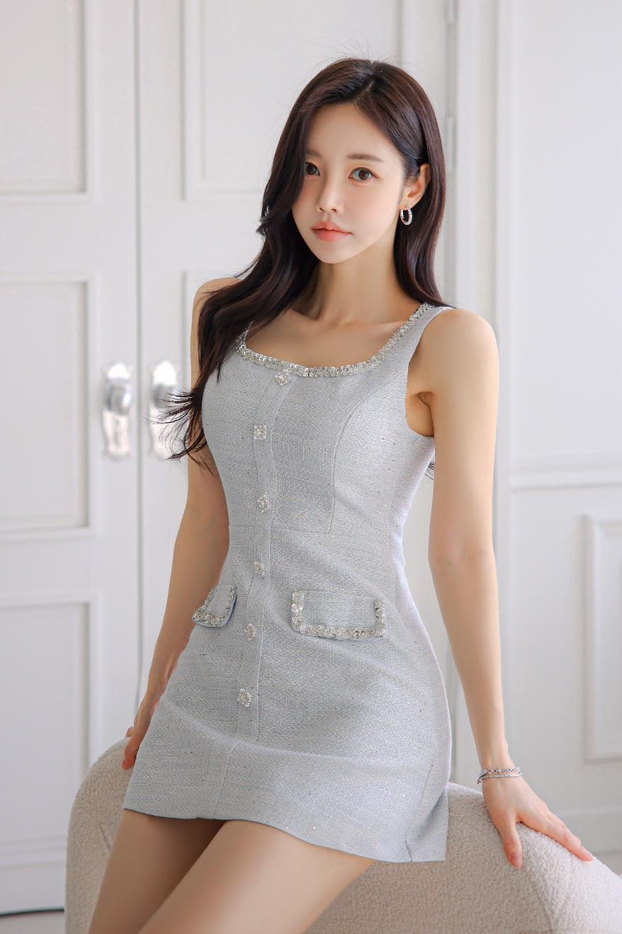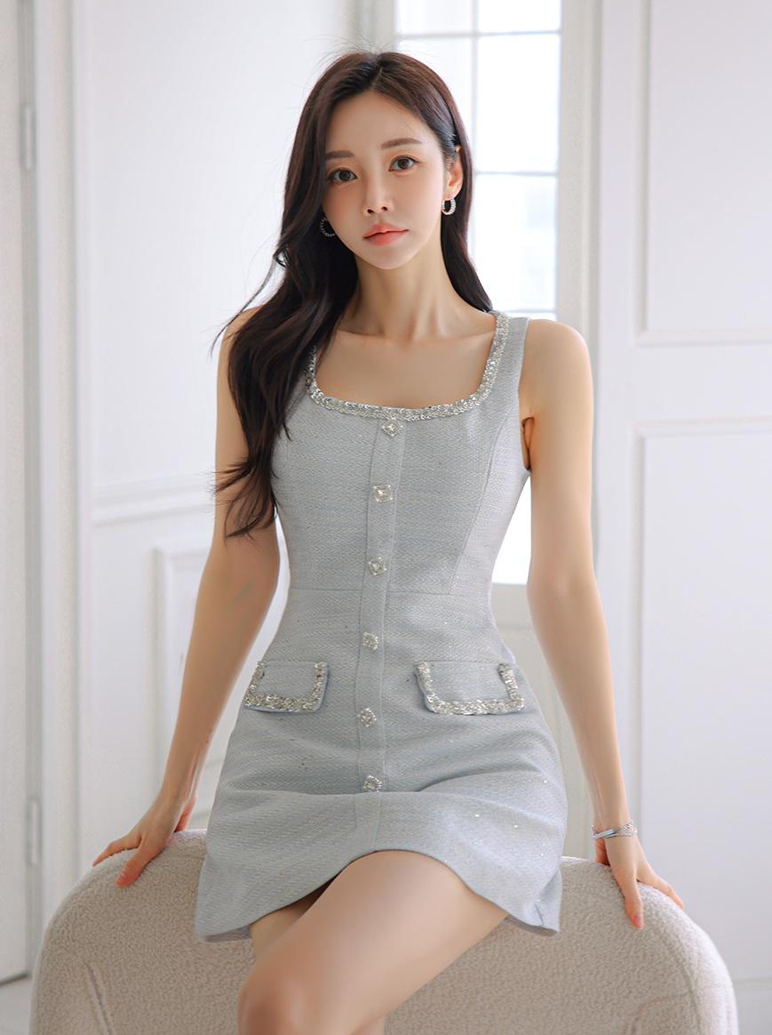 孙允珠优雅气质,浅蓝色连衣裙,都市时尚风。