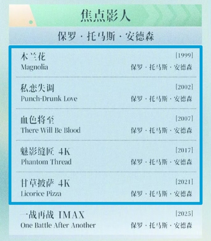 【北影节片单推介】本届北影节“焦点影人”,是前阵子狂拿奥斯卡的PTA。其实他的每一部,都值得大家去影院、看大银幕,全员佳作神作。即使看过,也够格二刷重温。重点推荐下《木兰花》《血色将至》和《甘草披萨》吧。