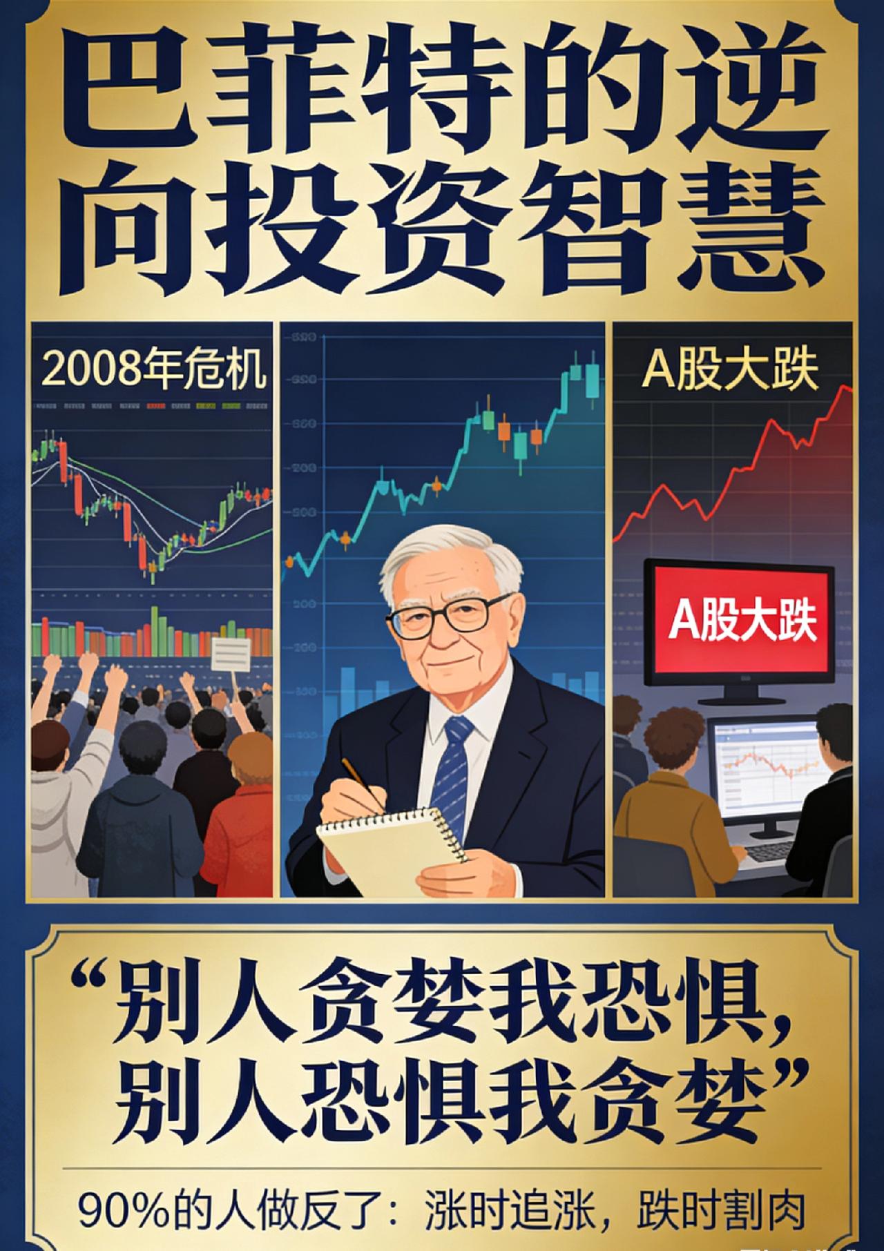 巴菲特说,别人贪婪我恐惧,别人恐惧我贪婪。但90%的人都做反了。 股市里,最