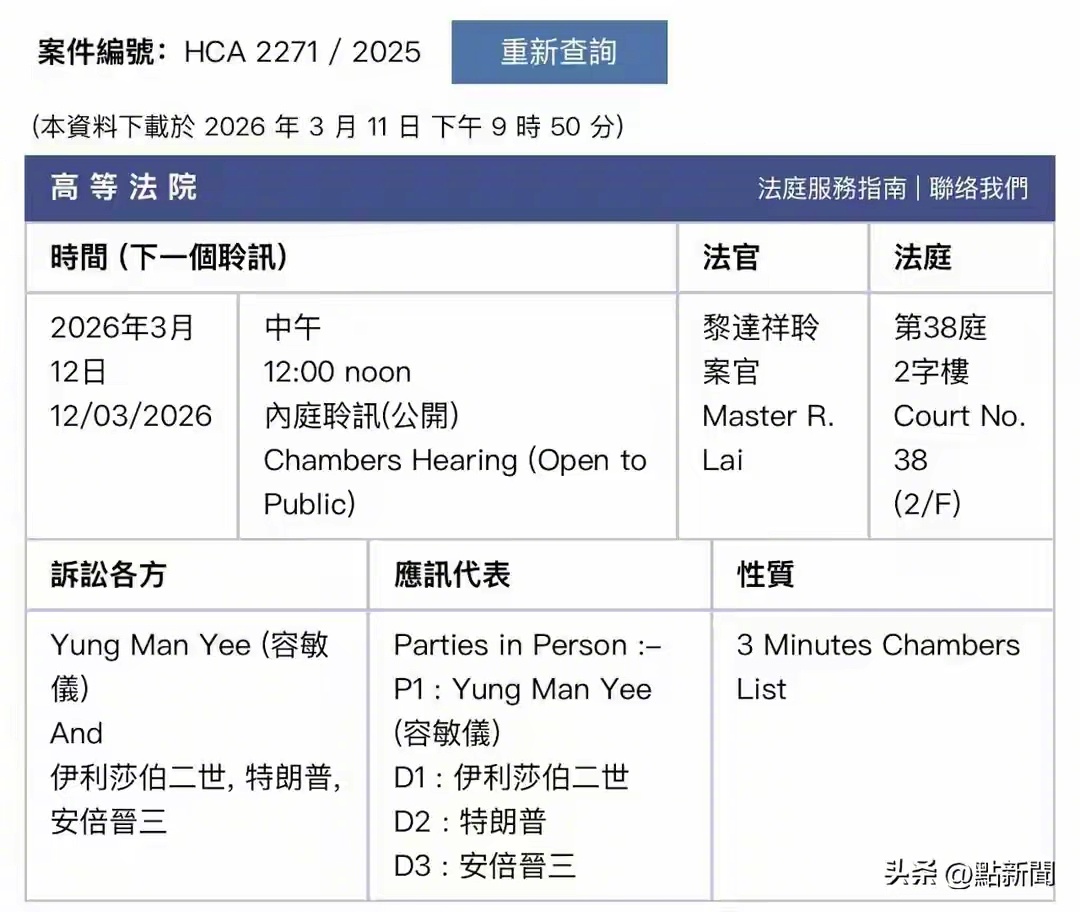 一名香港女子起诉英国女王、特朗普和安倍晋三。这名香港女子自称她是已故英女王及特朗