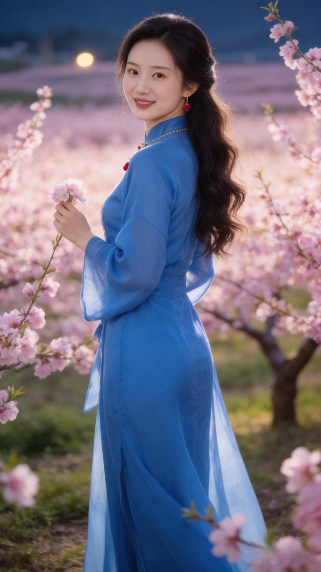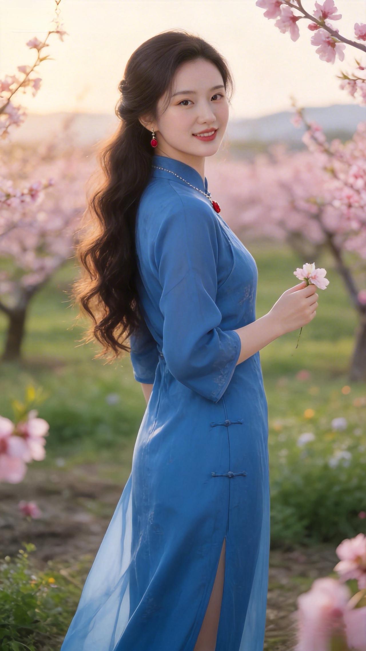 森林中的优雅女神,浅棕色连衣裙与自然融为一体。