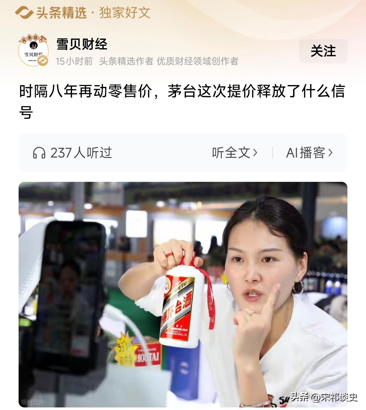 时隔八年再动零售价,茅台这次提价释放了什么信号?茅台调整零售价的同时将飞天53度500ml的出厂价上调100元,这波操作不只是简单涨价,更是向市场释放了一系列关键信号,引发行业高度关注。 这次提价十分克制,并非市场传闻的大幅上涨,而是出厂价涨100元、零售价微调40元,核心目的是重塑价格体系、修复渠道利润,平衡出厂价、指导价与市场价之间的长期失衡问题,同时稳定经销商积极性,修补市场预期裂缝。 从财务上看,提价将直接增厚茅台二季度后的盈利,但这并不代表白酒行业全面反转。 当前行业整体需求仍偏弱,茅台能涨价靠的是独一档的品牌力和定价权,二三线酒企并不具备跟随条件。 在资本市场层面,这次提价也起到了情绪修复作用,证明茅台不靠单纯放量,仅通过调价就能维持高质量增长,稀缺的不是酒本身,而是头部品牌对价格的绝对掌控力。