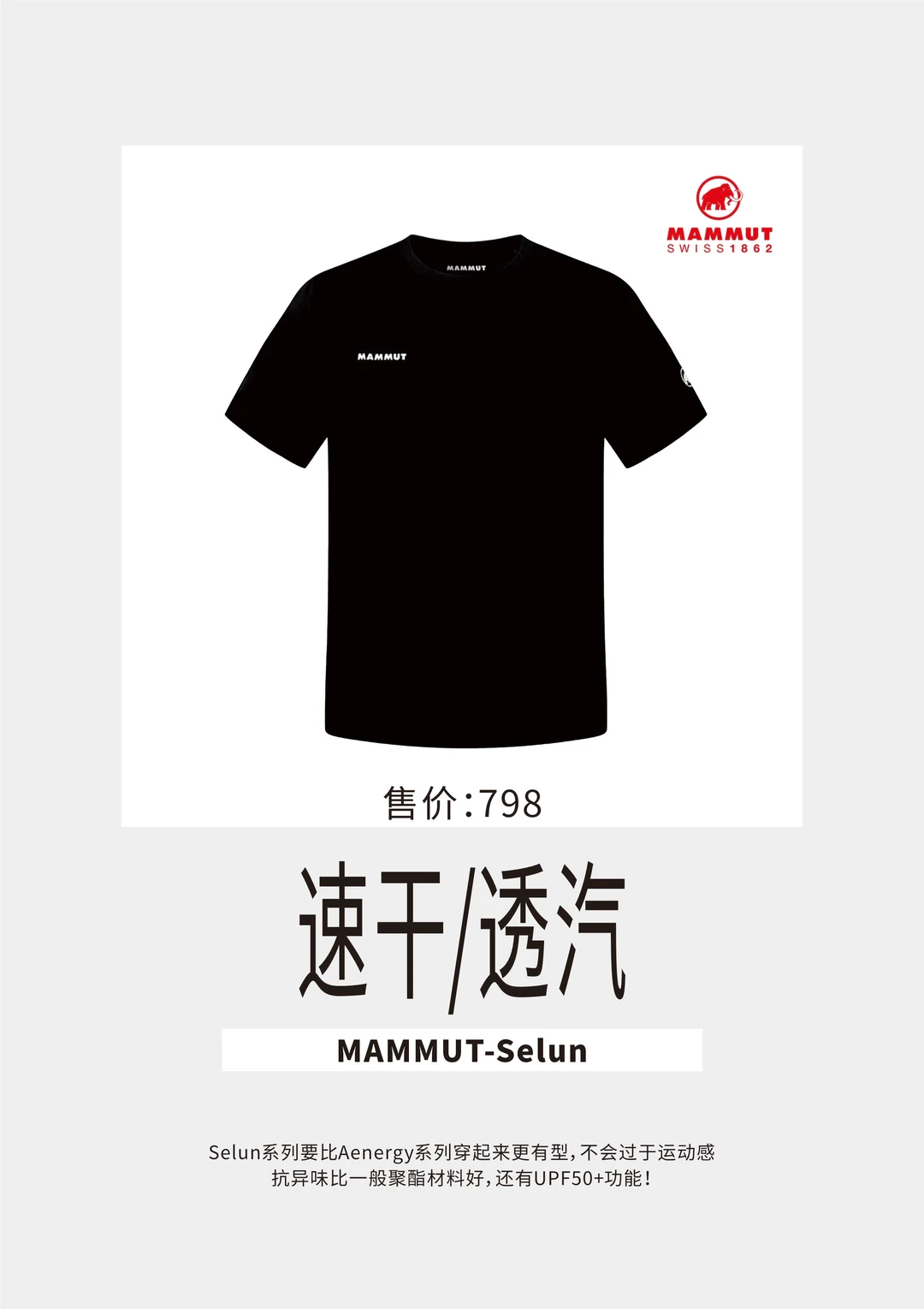 Selun系列要比Aenergy系列穿起来更有型,不会过于运动感。抗异味比一般聚酯材料好,还有UPF50+功能!