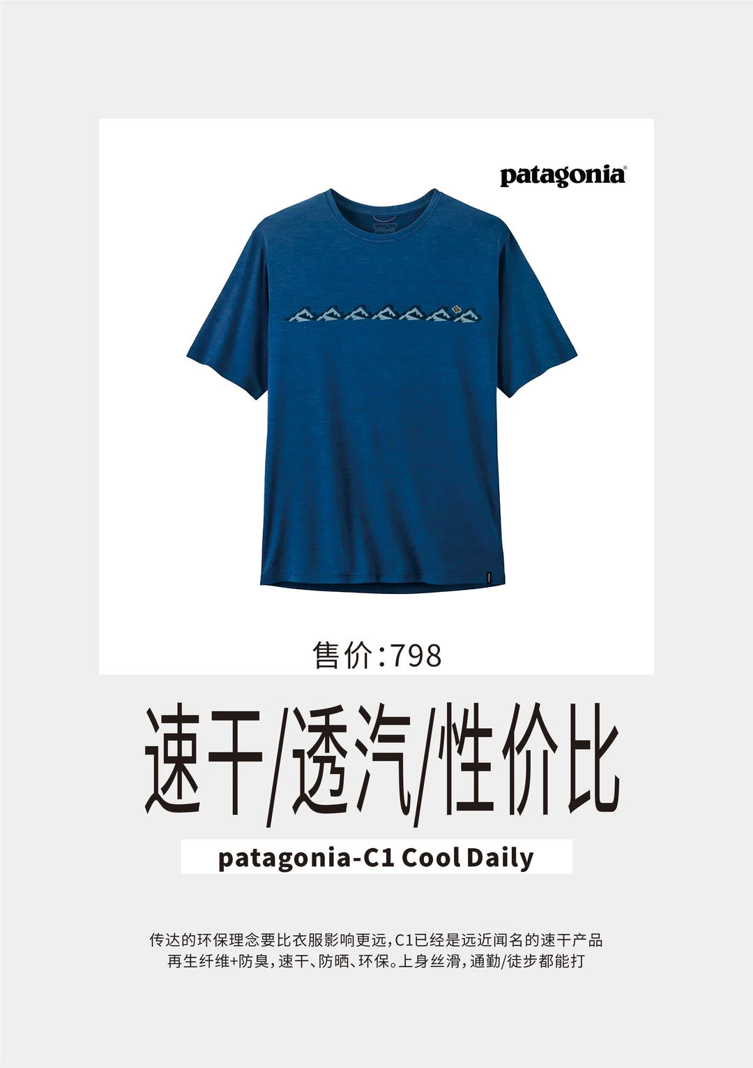 身份认同感要比衣服影响更远,C1已经是远近闻名的速干产品,再生纤维+防臭,速干、防晒、环保。上身丝滑,通勤/徒步都能打