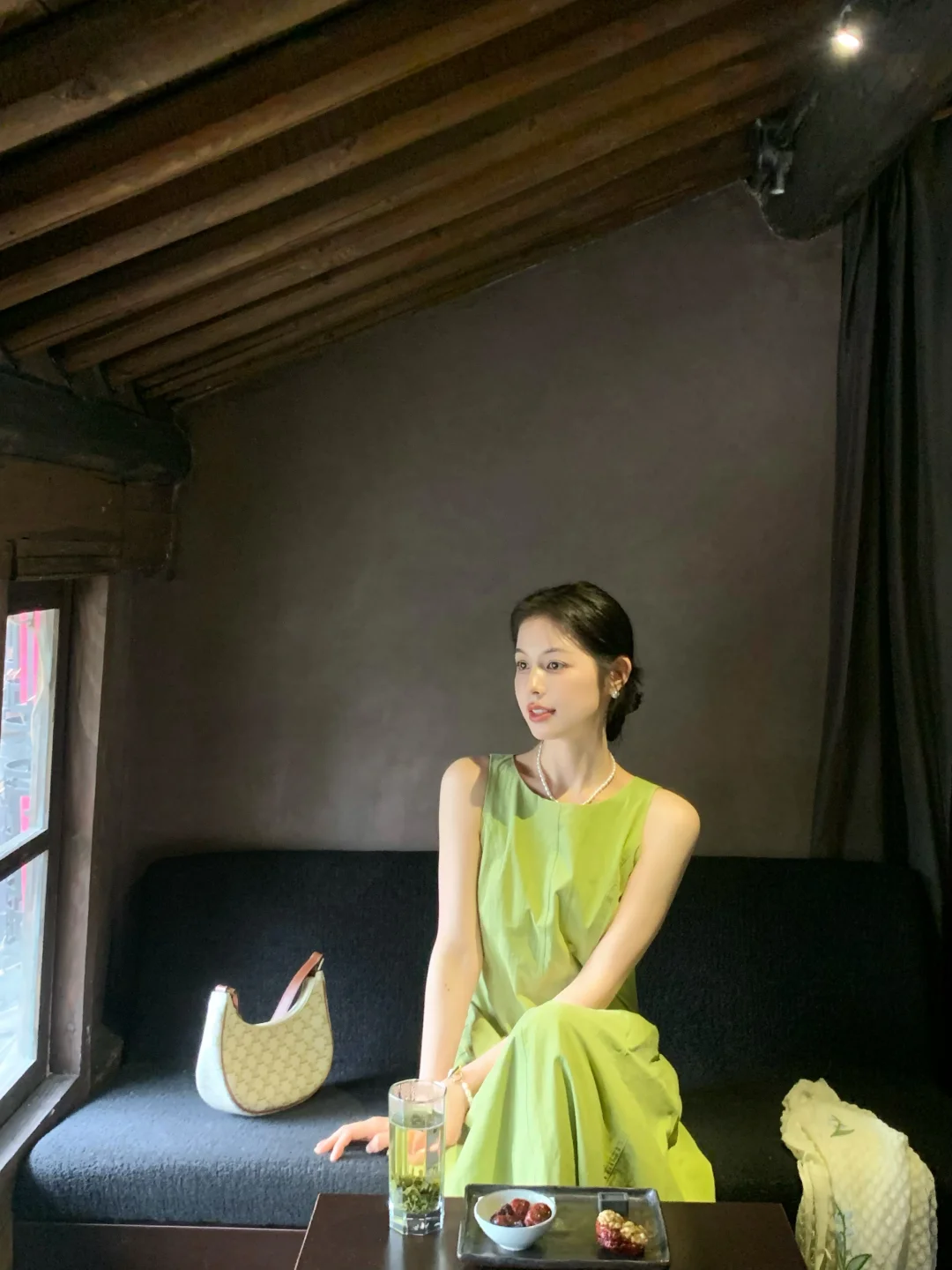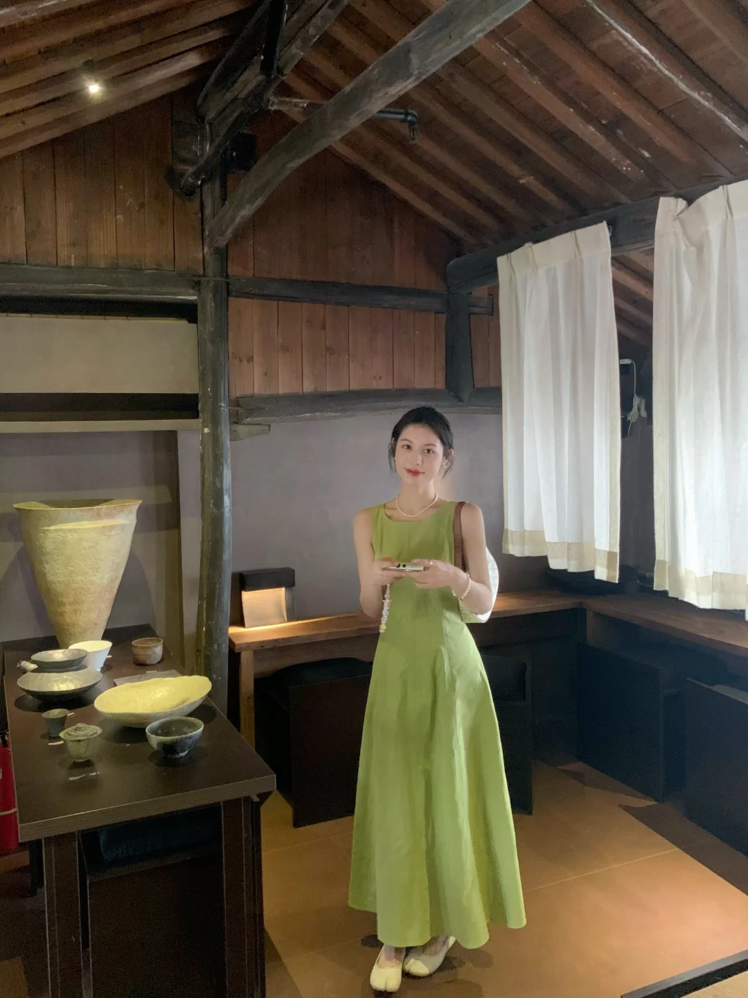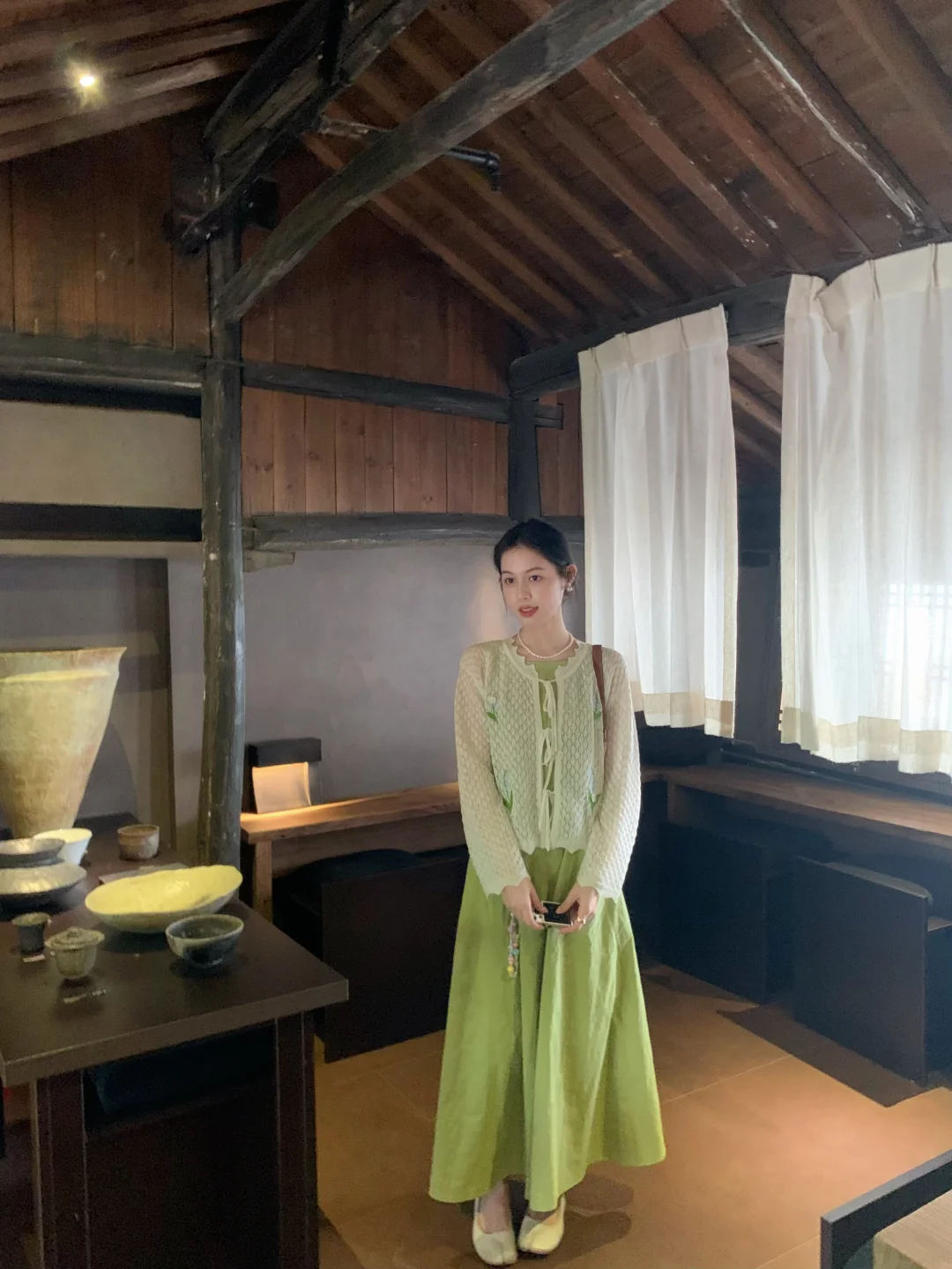 来拍照了 ootd 绿裙子